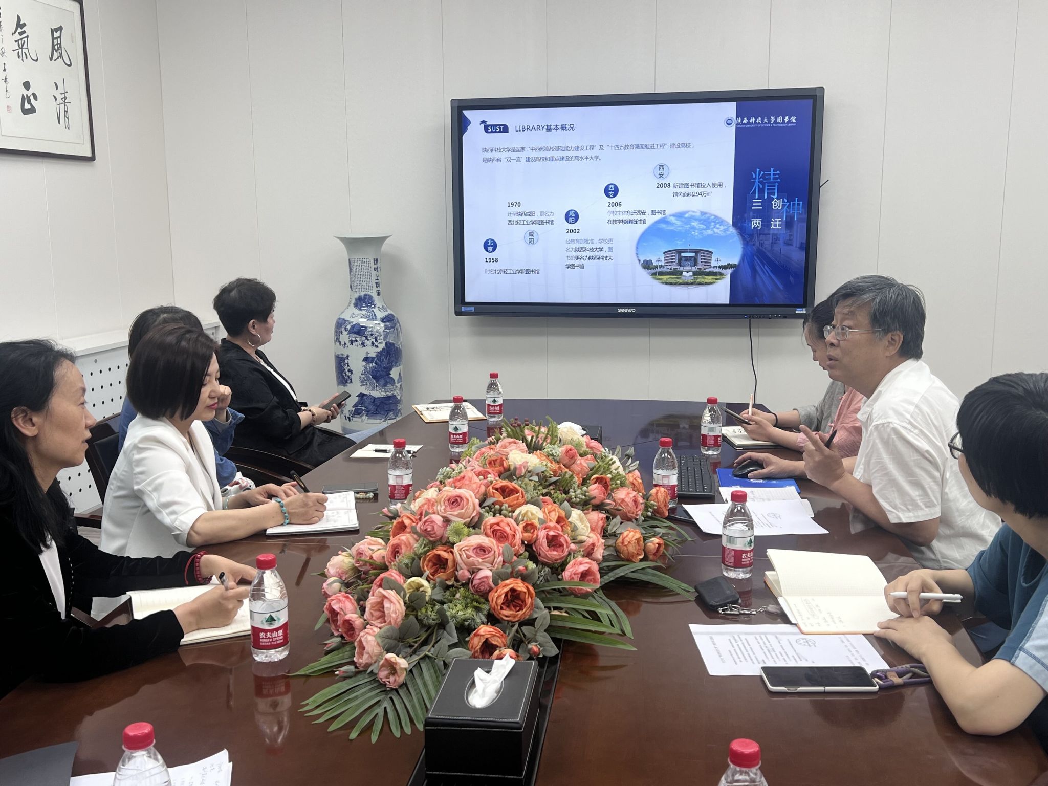 王海剛代表圖書館對(duì)來訪同仁表示熱烈歡迎,并介紹了我館智慧圖書館建設(shè)、團(tuán)隊(duì)建設(shè)、科研服務(wù)等工作情況,與會(huì)人員重點(diǎn)就圖書資源的數(shù)量種類、管理系統(tǒng)、軟硬件、圖書館布局和利用、讀者服務(wù)等問題進(jìn)行了深入的探討和交流。兩館將以此次交流為契機(jī),進(jìn)一步加強(qiáng)業(yè)務(wù)交流,創(chuàng)新工作思路,共同提高圖書館管理服務(wù)水平。