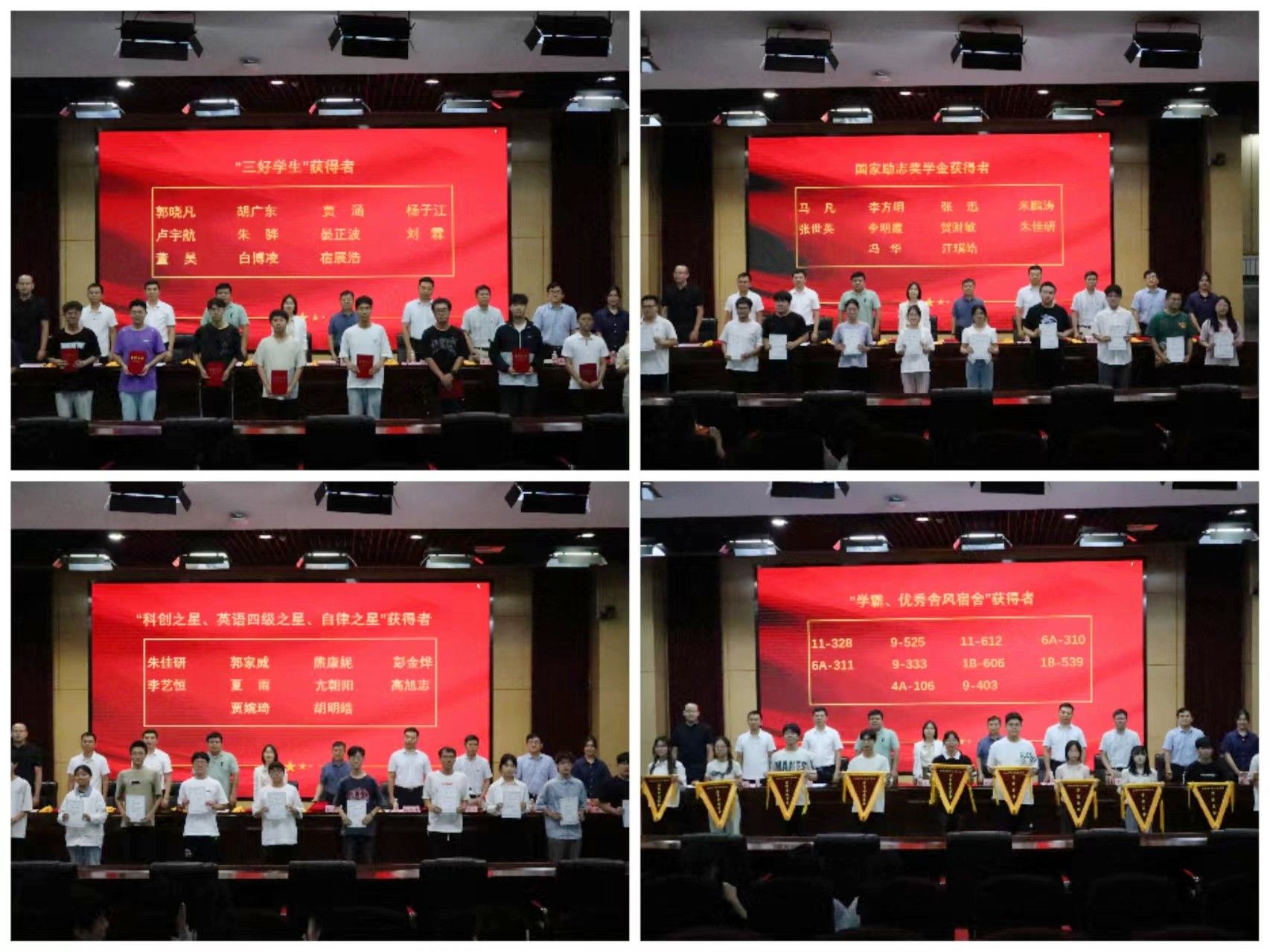 會上,王興東宣讀了《關于表彰“國家勵志獎學金”“三好學生”獲得者的決定》,院黨委書記陳源梅宣讀了《關于表彰“優(yōu)秀團員標兵”“優(yōu)秀團干”“優(yōu)秀團員”“先進團支部”“十佳社團”的決定》,副院長張鵬偉宣讀了《關于表彰“優(yōu)秀學業(yè)獎學金”“優(yōu)秀學生干部”“學霸宿舍”“優(yōu)秀舍風宿舍”獲得者的決定》,物理學科主任羅道斌宣讀了《關于表彰“考研之星”“科創(chuàng)之星”“英語四級學習之星”“自律之星”的決定》,與會老師為獲獎學生代表頒獎。頒獎結束后,“考研之星”黃佳霖、“優(yōu)秀就業(yè)代表”車慶軒、“優(yōu)秀團員標兵”朱驊、“科創(chuàng)之星”董昊四位同學做了交流發(fā)言。