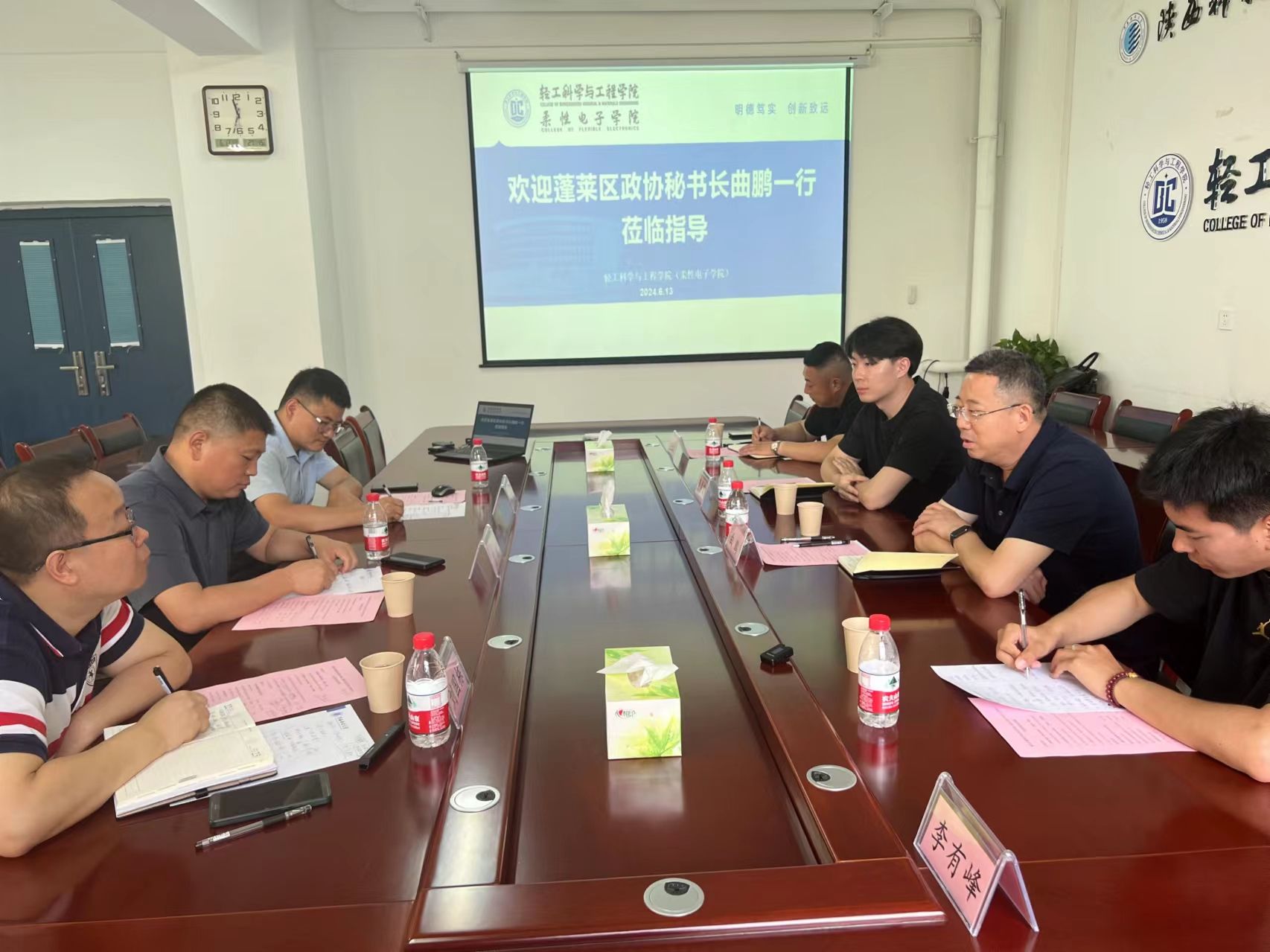 6月13日,煙臺市蓬萊區(qū)政協(xié)秘書長曲鵬、煙臺市蓬萊區(qū)融媒體中心主任李有峰、煙臺好前程文具有限公司總經(jīng)理李易霖、煙臺凈仁醫(yī)藥有限公司董事長王建東等一行到輕工科學(xué)與工程學(xué)院走訪調(diào)研,洽談校地企合作事宜。輕工學(xué)院院長呂斌出席座談會并致歡迎辭,輕工學(xué)院副院長劉國棟主持座談會。