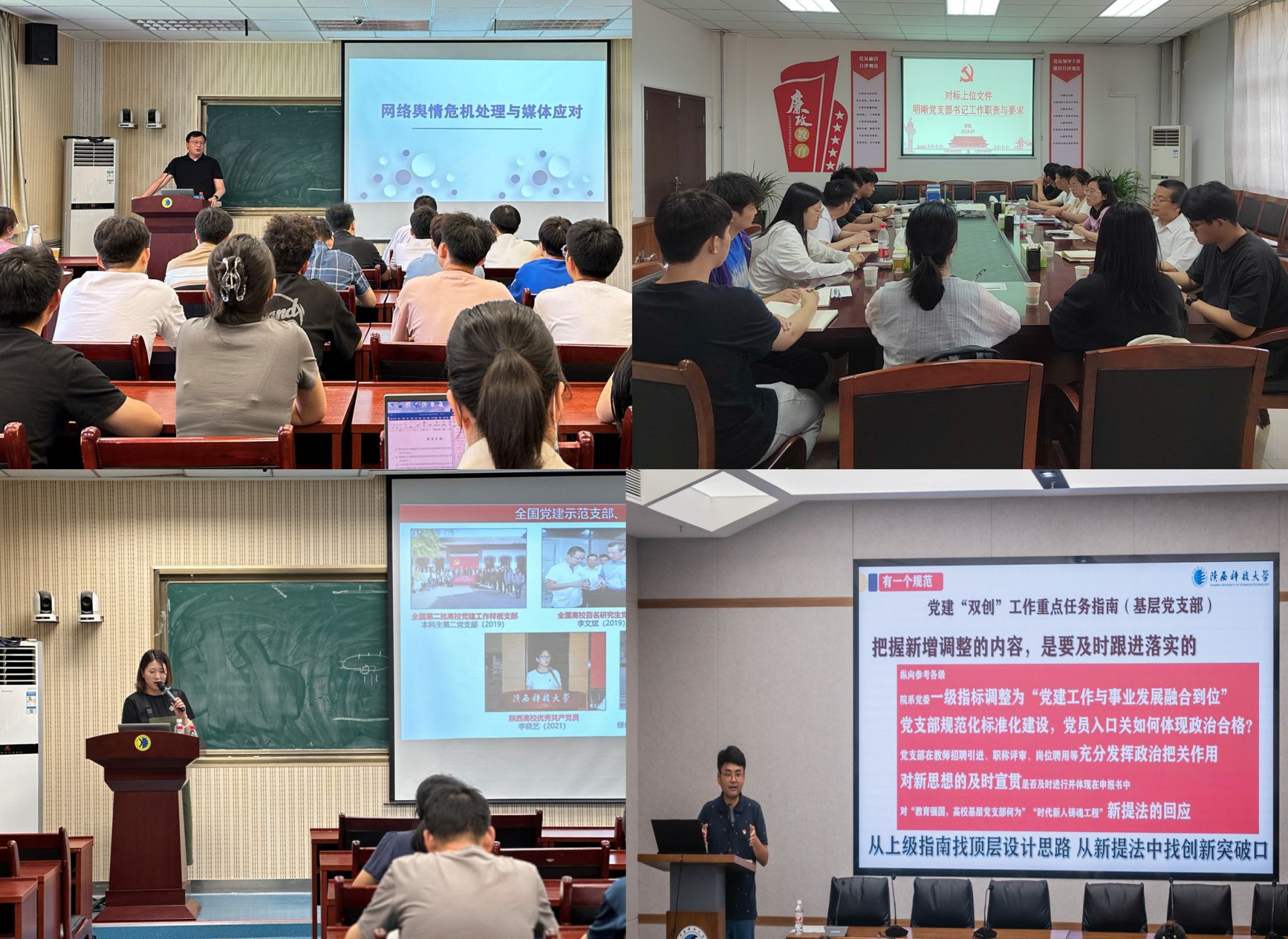學(xué)院黨委高度重視本次支部書記培訓(xùn)班,以培優(yōu)育強(qiáng)黨建頭雁隊伍、促進(jìn)基層黨建提質(zhì)增效為目標(biāo),精心籌備,結(jié)合黨紀(jì)學(xué)習(xí)教育共開展10個單元學(xué)習(xí);先后邀請6位院內(nèi)外教師,圍繞黨組織建設(shè)、黨支部書記工作職責(zé)與要求、標(biāo)桿院系和樣板支部創(chuàng)建經(jīng)驗、網(wǎng)絡(luò)輿情危機(jī)處理等方面開展培訓(xùn)。13個師生黨支部高質(zhì)量組織推進(jìn),黨支部書記、支部委員積極參與,圓滿完成了培訓(xùn)任務(wù),基本達(dá)到了預(yù)期目的。本次培訓(xùn)突出學(xué)習(xí)宣傳貫徹習(xí)近平新時代中國特色社會主義思想、黨紀(jì)學(xué)習(xí)教育、學(xué)校第三次黨代會精神多個主題,通過“量身定制”培訓(xùn)輔導(dǎo),切實增強(qiáng)黨支部書記、支部委員的政治素質(zhì)、理論水平、黨性修養(yǎng)和黨務(wù)工作能力。