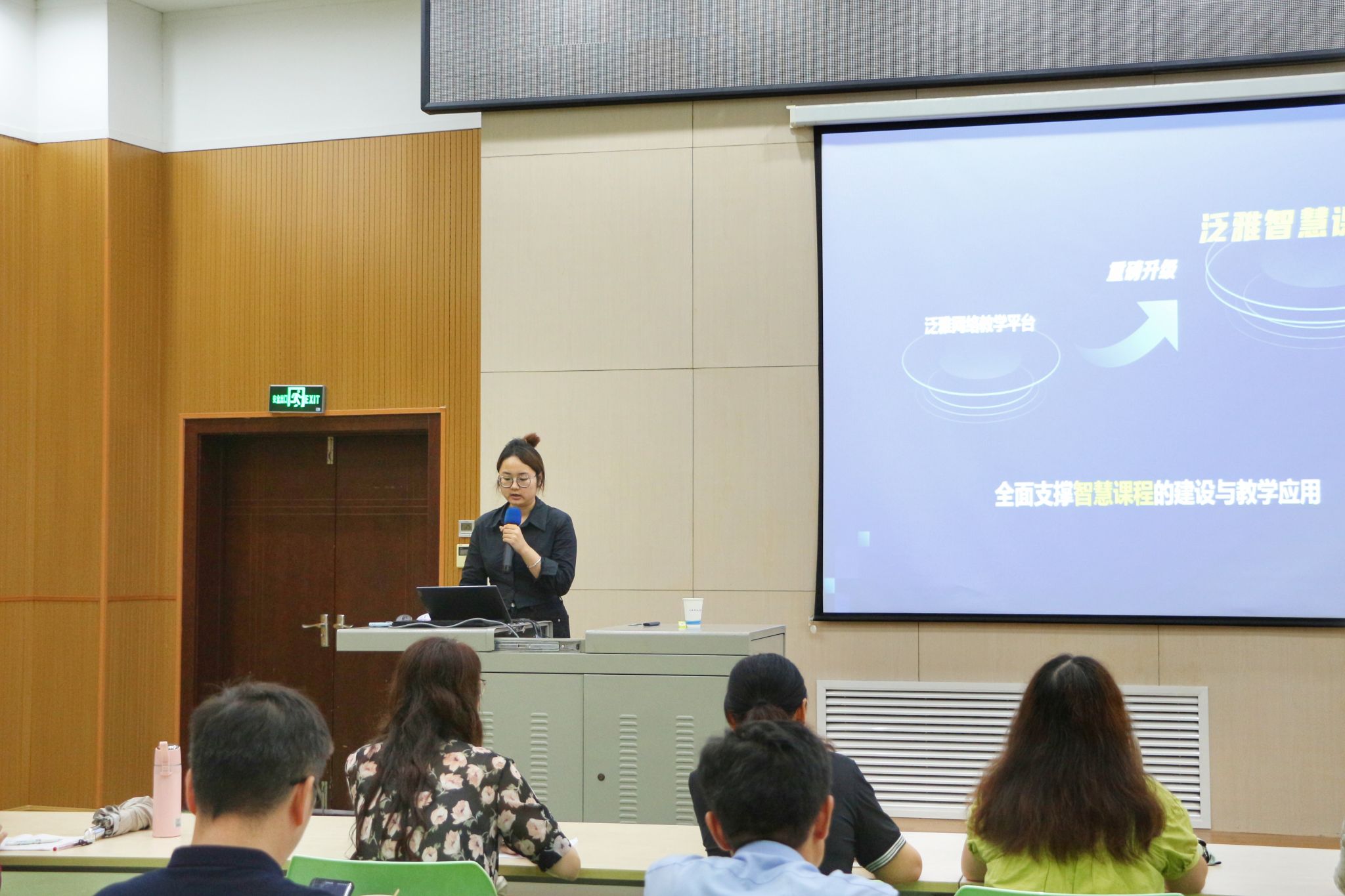 隨后,超星集團(tuán)培訓(xùn)師崔馨文作“AI 智慧課程助力教學(xué)改革探索與實(shí)踐”專題培訓(xùn)。崔馨文介紹了超星泛雅智慧教學(xué)平臺(tái)如何通過(guò)AI技術(shù)賦能智慧教學(xué)及場(chǎng)景應(yīng)用,重點(diǎn)對(duì)“智能體”“知識(shí)圖譜”“AI工具”三大核心升級(jí)進(jìn)行講解說(shuō)明,并對(duì)AI助教的使用、構(gòu)建知識(shí)樹、關(guān)聯(lián)課程資源等具體功能進(jìn)行了現(xiàn)場(chǎng)演示。