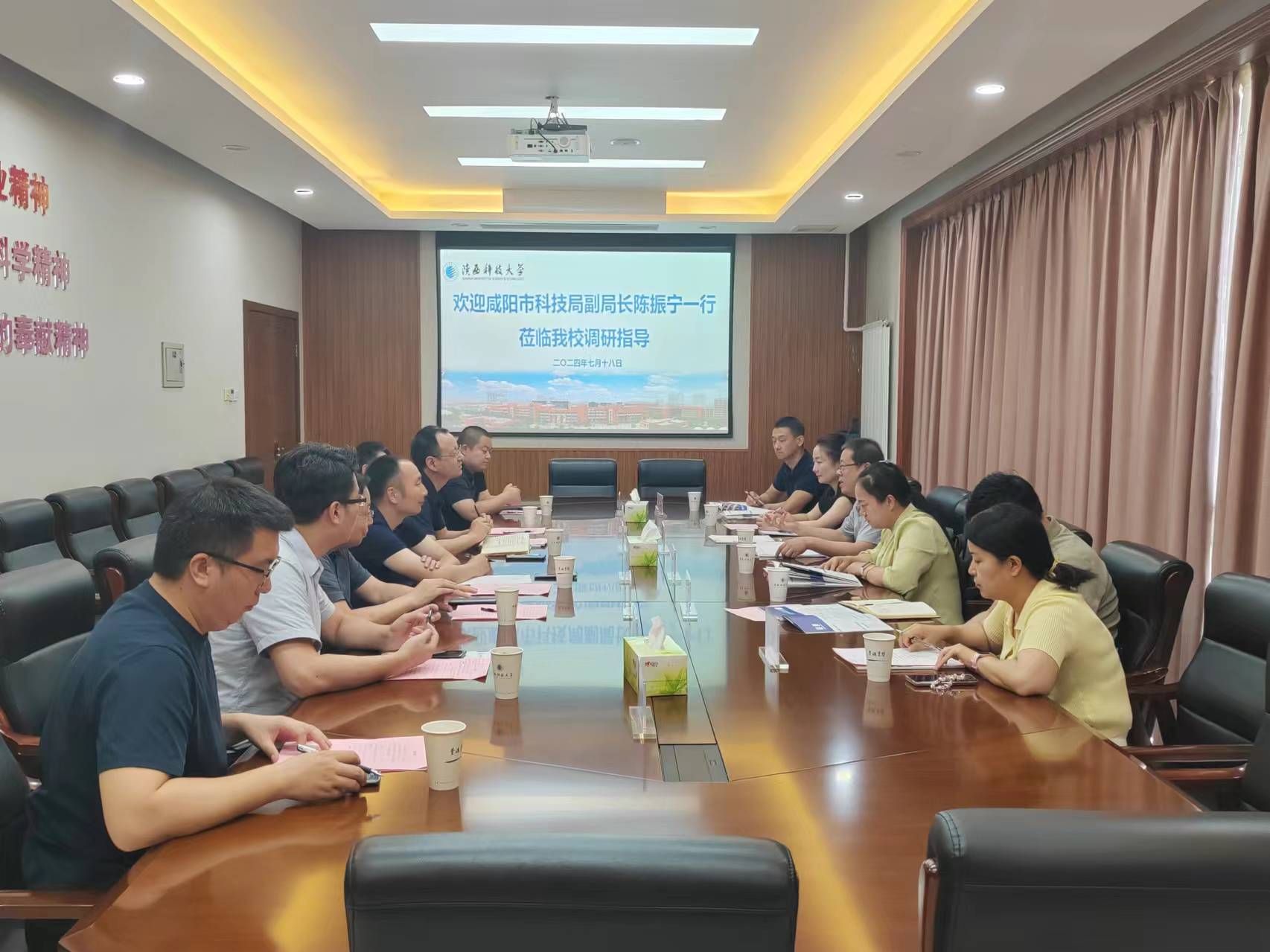 為貫徹落實(shí)我校第三次黨代會(huì)精神,深入實(shí)施服務(wù)社會(huì)創(chuàng)優(yōu)行動(dòng),促進(jìn)產(chǎn)學(xué)研開(kāi)放合作,經(jīng)前期充分溝通,7月18日上午,咸陽(yáng)市科技局副局長(zhǎng)陳振寧、秦創(chuàng)原咸陽(yáng)創(chuàng)新促進(jìn)中心副主任習(xí)斌等領(lǐng)導(dǎo)一行6人來(lái)我校調(diào)研科技成果轉(zhuǎn)化工作。我校前沿科學(xué)與技術(shù)轉(zhuǎn)移研究院常務(wù)副院長(zhǎng)強(qiáng)濤濤,電子信息與人工智能學(xué)院、電氣與控制工程學(xué)院、物理與信息科學(xué)學(xué)院、輕工科學(xué)與工程學(xué)院相關(guān)專家教授及前沿院部分科室負(fù)責(zé)人參加了本次調(diào)研。