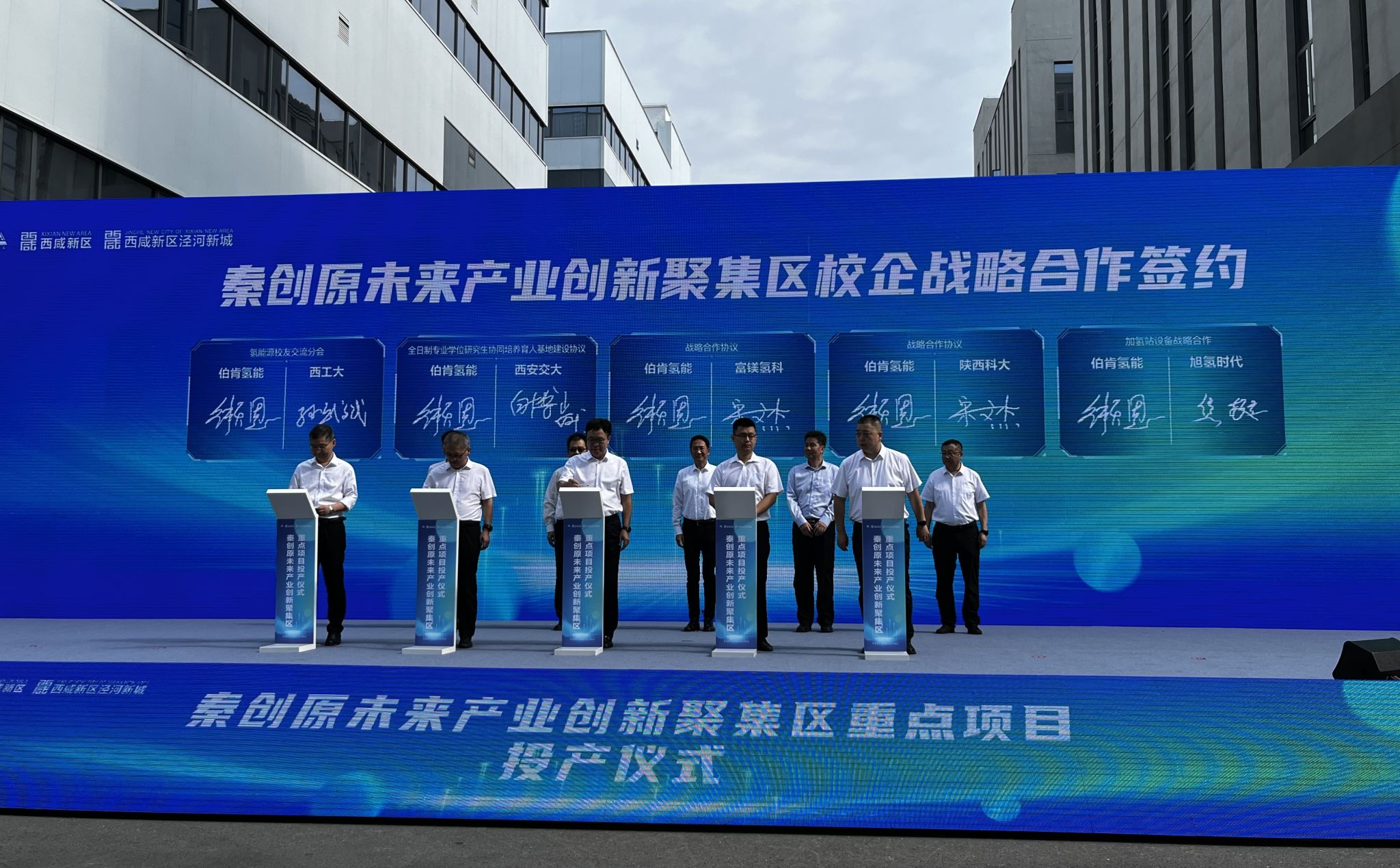 8月7日上午,在西咸新區(qū)涇河新城秦創(chuàng)原氫合灣氫燃料電池產(chǎn)業(yè)園,舉辦了秦創(chuàng)原未來產(chǎn)業(yè)創(chuàng)新聚集區(qū)校企戰(zhàn)略合作簽約儀式。陜西省科技廳一級(jí)巡視員郭杰、副處長(zhǎng)徐海晗、西安市科技局副局長(zhǎng)樓文曉、西咸新區(qū)和涇河新城多位領(lǐng)導(dǎo),西安交通大學(xué)、西北工業(yè)大學(xué)、西安理工大學(xué)、陜西科技大學(xué)等20家高校及企業(yè)代表出席了本次活動(dòng)。我校機(jī)電工程學(xué)院(智能制造與機(jī)器人工程學(xué)院)宋文杰副教授出席此次活動(dòng),并與北京伯肯節(jié)能科技股份有限公司進(jìn)行校企合作簽約。