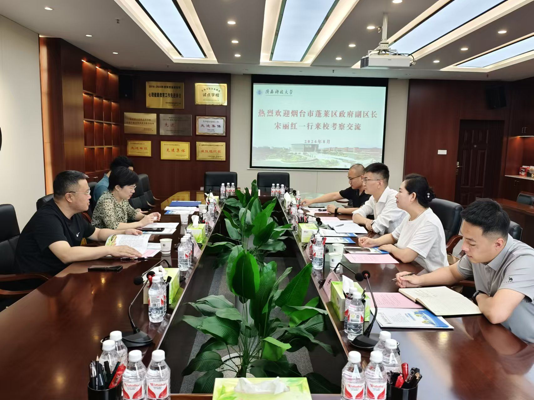 李曉對宋麗紅一行表示歡迎,他從學(xué)校的辦學(xué)歷史、學(xué)科特色和學(xué)生就業(yè)等方面介紹了學(xué)校相關(guān)情況。他指出,蓬萊區(qū)的產(chǎn)業(yè)布局與我校的化工、材料、食品等學(xué)科發(fā)展高度契合,希望雙方能以此次交流為開端,在學(xué)生實(shí)習(xí)實(shí)踐、就業(yè)等方面進(jìn)一步強(qiáng)化校地交流,深化校地合作。李曉誠摯發(fā)出邀請,希望蓬萊區(qū)政府在秋季組織當(dāng)?shù)貎?yōu)質(zhì)企業(yè)來校開展招聘會。