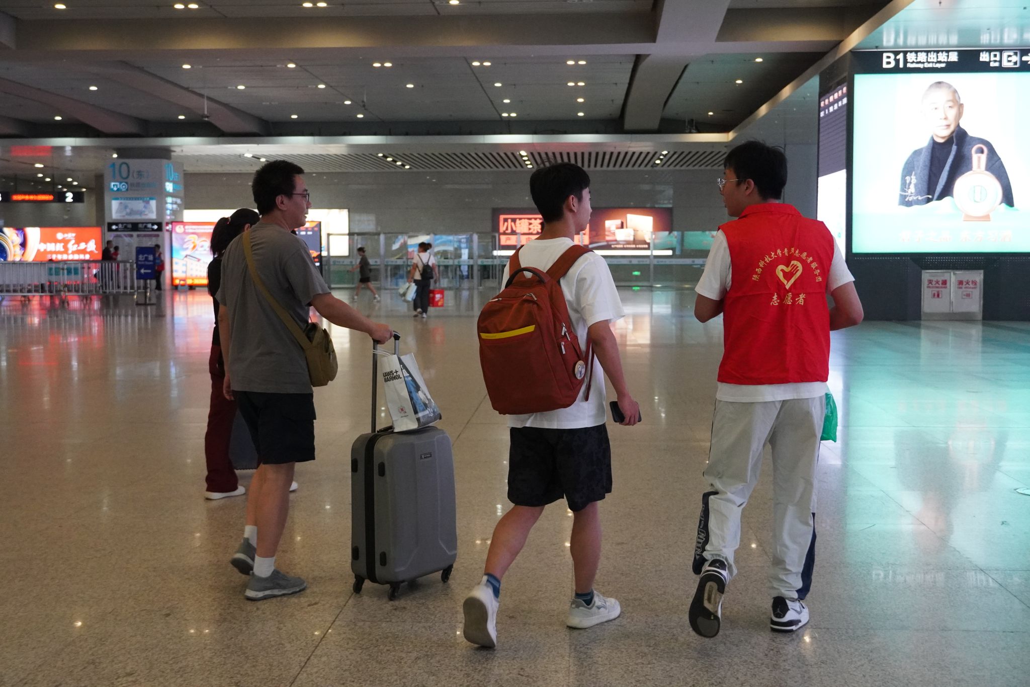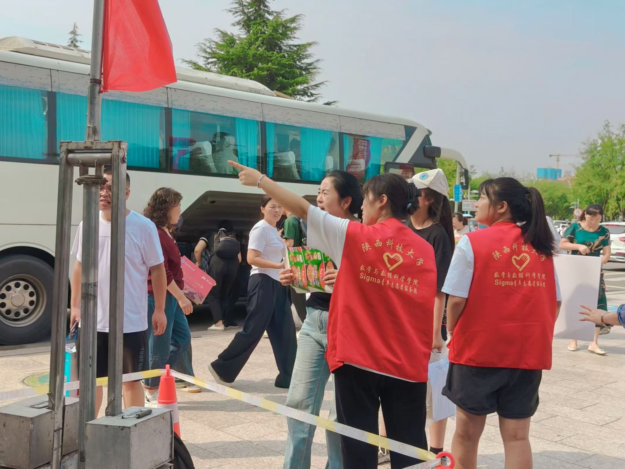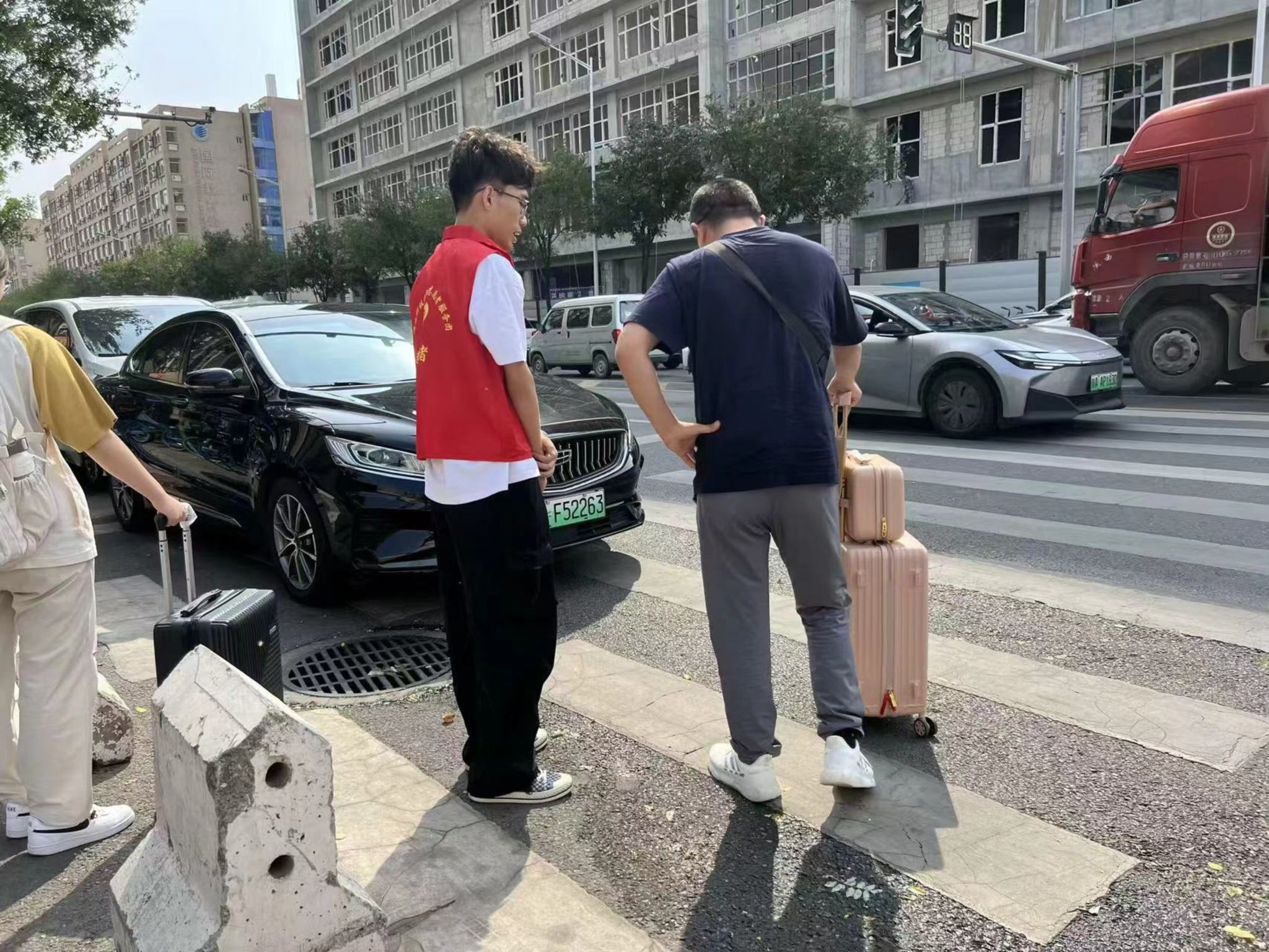 志愿者們在學(xué)校組織下為新生提供接站服務(wù),在西安站、西安北站、地鐵站口設(shè)置接站服務(wù)點(diǎn)。天微微亮,太陽染紅了天空的一角,志愿者的紅馬甲映紅了服務(wù)站點(diǎn)。在站點(diǎn)現(xiàn)場,志愿者們按照預(yù)定方案,分工明確、有條不紊地開展接站工作。志愿者們手舉陜西科技大學(xué)引導(dǎo)牌,成為同學(xué)們“第一眼就能望見的感動”;跟車服務(wù)志愿者幫助新生搬運(yùn)行李,一路上向同學(xué)和家長介紹學(xué)校的基本情況。