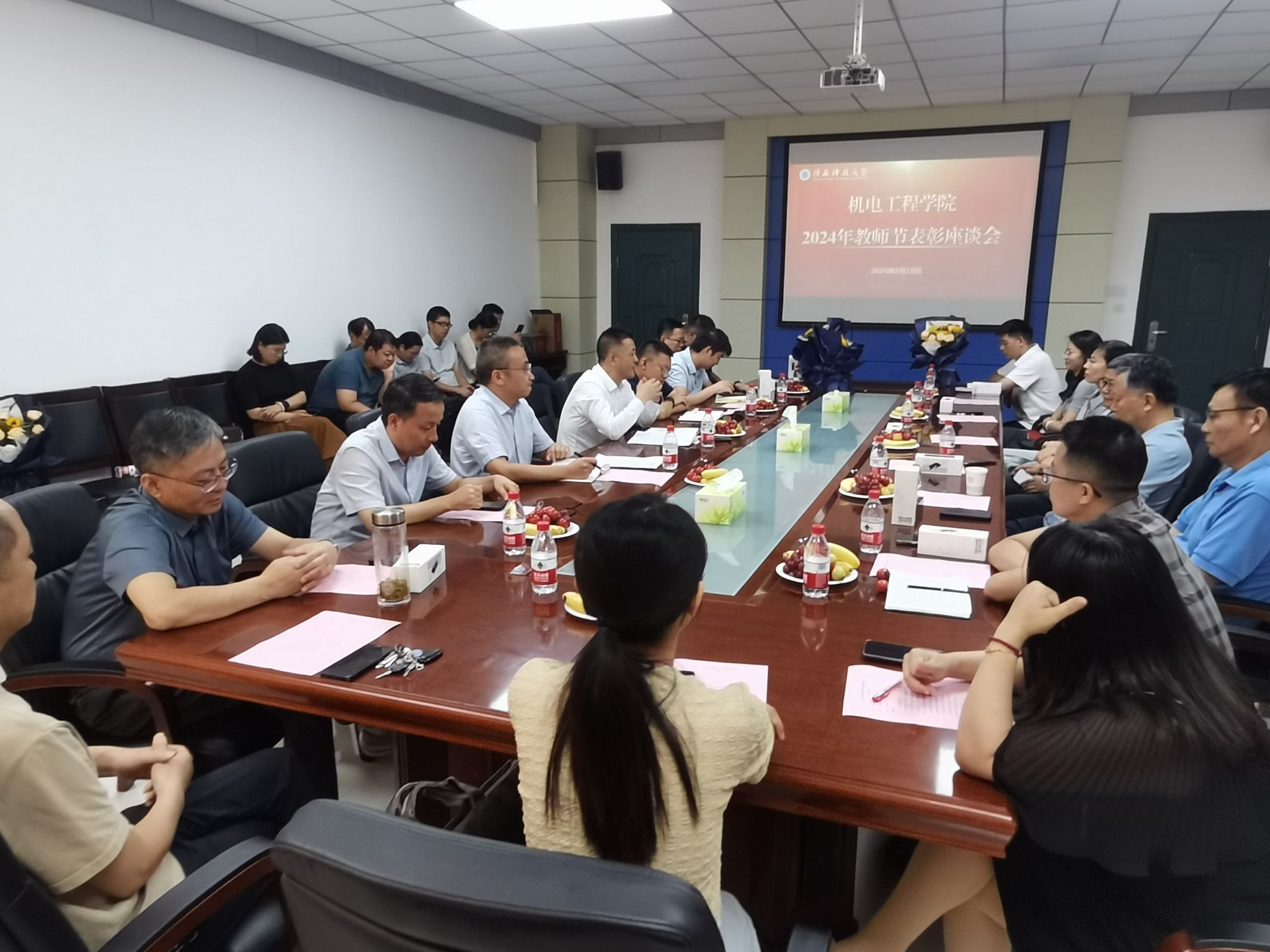 全國第40個教師節(jié),樹立先進典型,頌揚高尚師德師風,弘揚教育家精神,9月10日上午,機電工程學院(智能制造與機器人工程學院)舉行2024年教師節(jié)表彰座談會。大會由學院黨委副書記景馬良主持。