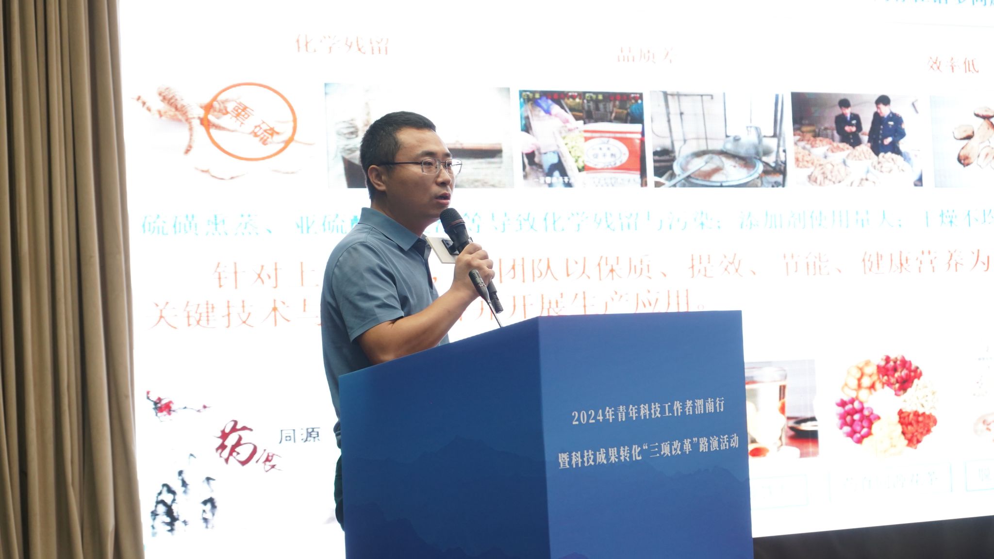 王棟對藥食產(chǎn)品綠色智能加工裝備的研發(fā)與應(yīng)用進(jìn)行了項(xiàng)目路演。該項(xiàng)目針對藥食產(chǎn)品加工存在的化學(xué)處理易殘留、品質(zhì)差、效率低、能耗高等問題,研發(fā)出了真空脈動干燥、溫濕度控制氣流沖擊燙漂滅酶護(hù)色殺菌、壓力脈動控溫超聲浸提等方面的新型加工技術(shù)與系列化智能裝備。在中藥材(金銀花、枸杞、參類、丹皮、茯苓)、藥食同源花茶(玫瑰、牡丹)、優(yōu)質(zhì)果蔬干制品(棗、葡萄、蘋果、桑葚、各類果脯)、速溶養(yǎng)生羹/粥、速溶藥食精華、中藥浸膏等產(chǎn)品的加工方面效果良好,已在全國幾十家單位進(jìn)行了推廣應(yīng)用。