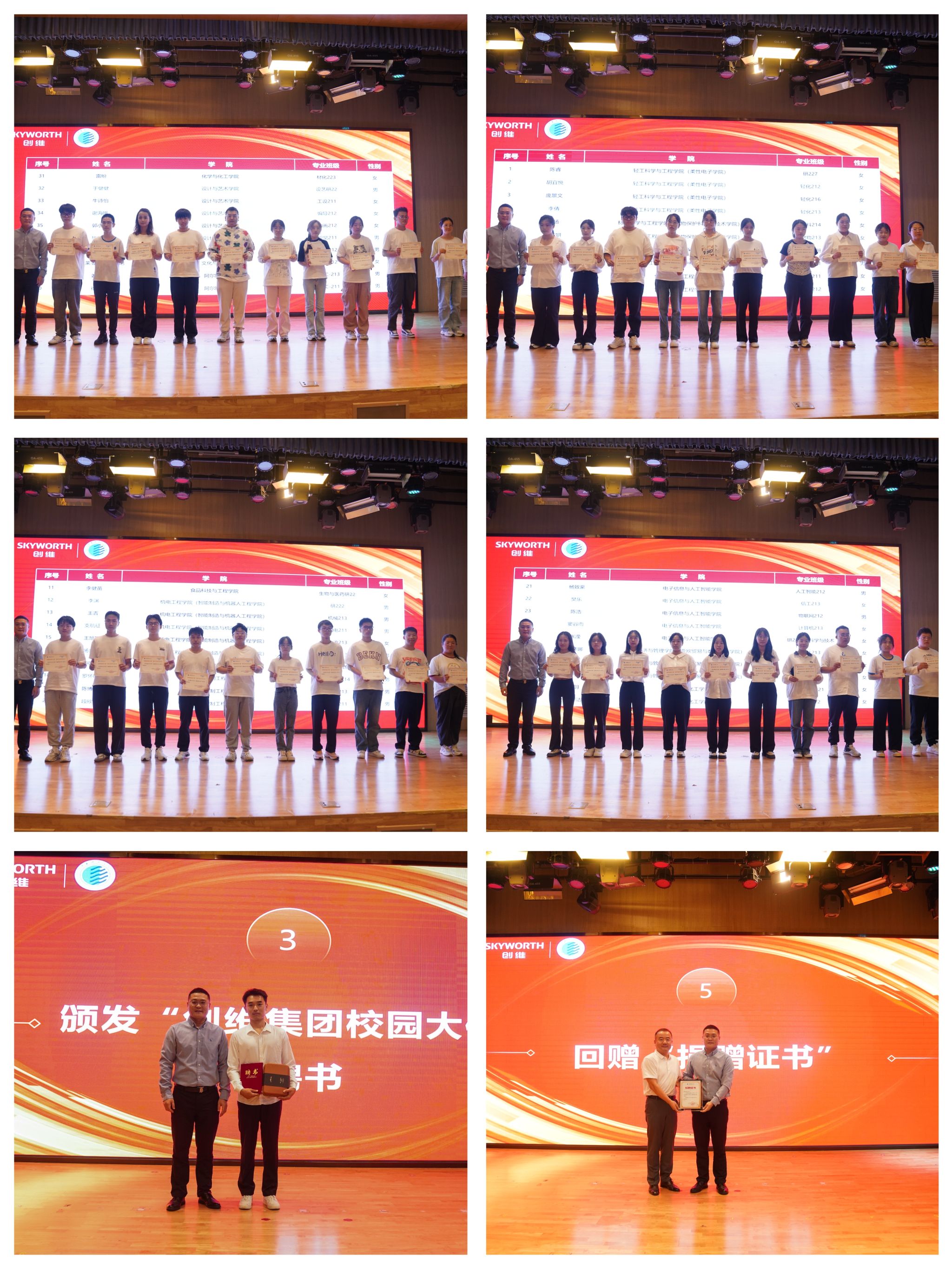 儀式上,殷立雄代表學校為創(chuàng)維集團頒發(fā)捐贈證書,李曉、徐立為獲助學生頒發(fā)助學金證書,創(chuàng)維集團為校園大使頒發(fā)聘書。