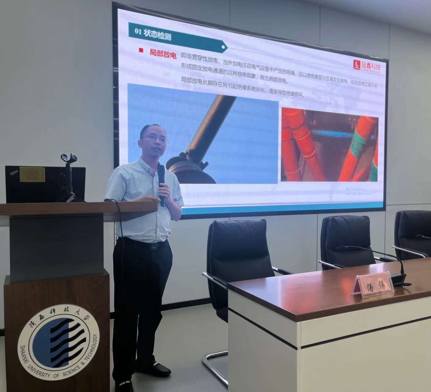 聘任儀式后,唐明為學院師生做了題為“在線式脈沖電流狀態(tài)監(jiān)測關鍵技術及其應用”的“未央導師論壇”學術報告。報告針對目前高壓開關設備潛伏的運行隱患,通過分析常用在線監(jiān)測和日常巡檢技術存在的問題,提出了基于脈沖電流法原理,將帶電顯示裝置傳感器作為局部放電檢測傳感器,感知高壓環(huán)網(wǎng)開關柜內(nèi)放電信號。學術報告理論與實例有機結合,極大地拓寬了師生的技術應用視野。