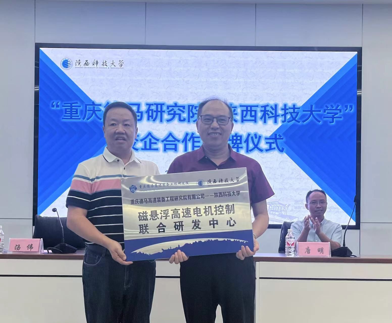 儀式第二階段,舉行了重慶德馬高速裝備工程研究院與電氣與控制工程學院共建磁懸浮高速電機控制聯(lián)合研發(fā)中心”校企合作授牌儀式。