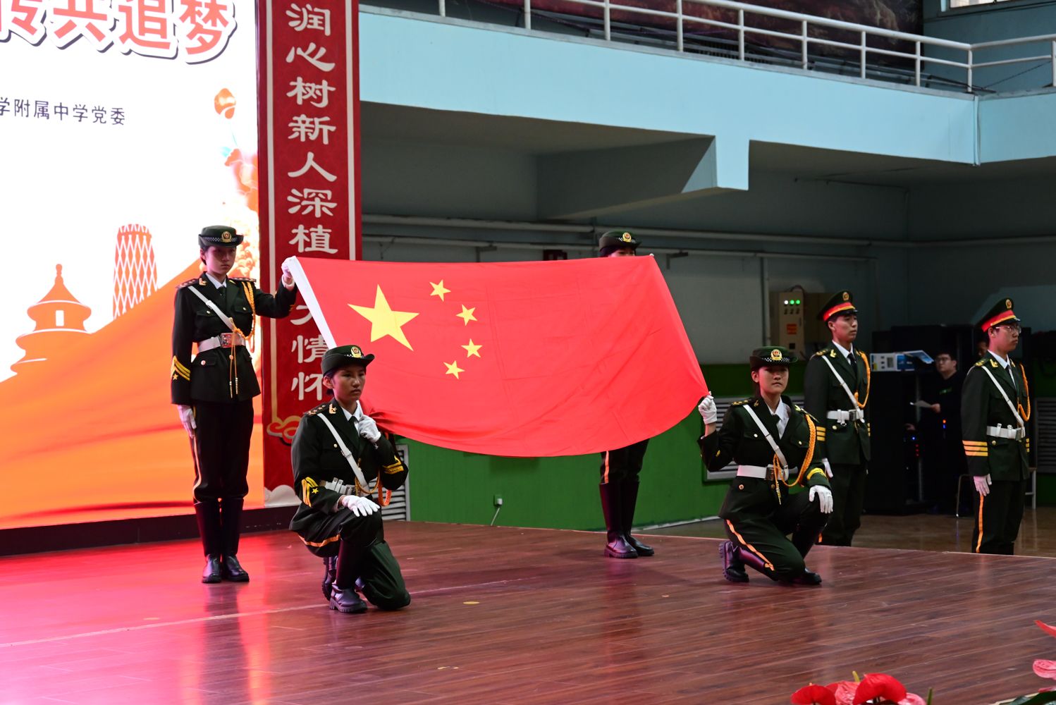 9月30日清晨,陜西科技大學(xué)附屬中學(xué)文體館內(nèi),師生們齊聚一堂,學(xué)校關(guān)工委辦公室、離退處黨委與附屬中學(xué)黨委聯(lián)合開(kāi)展“老少攜手迎華誕 薪火相傳共追夢(mèng)”主題升旗活動(dòng)。附屬中學(xué)黨委書(shū)記、校長(zhǎng)王琪,離退處黨委副書(shū)記、副處長(zhǎng)高翔,處長(zhǎng)助理苗曉潔出席活動(dòng),20余名離退休黨員代表與200余名青少年學(xué)子參與活動(dòng)?;顒?dòng)由附屬中學(xué)校長(zhǎng)助理成宏亮主持。