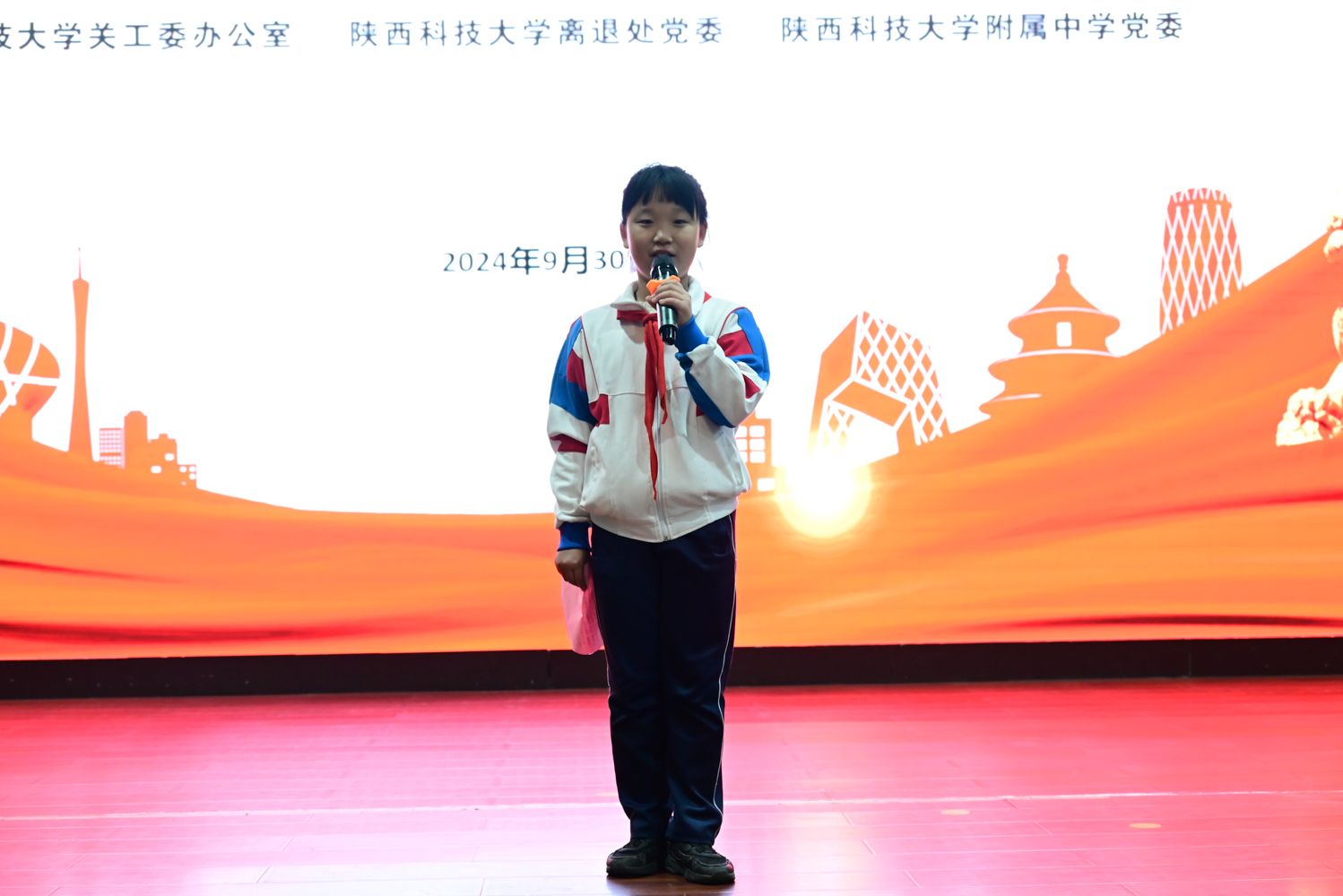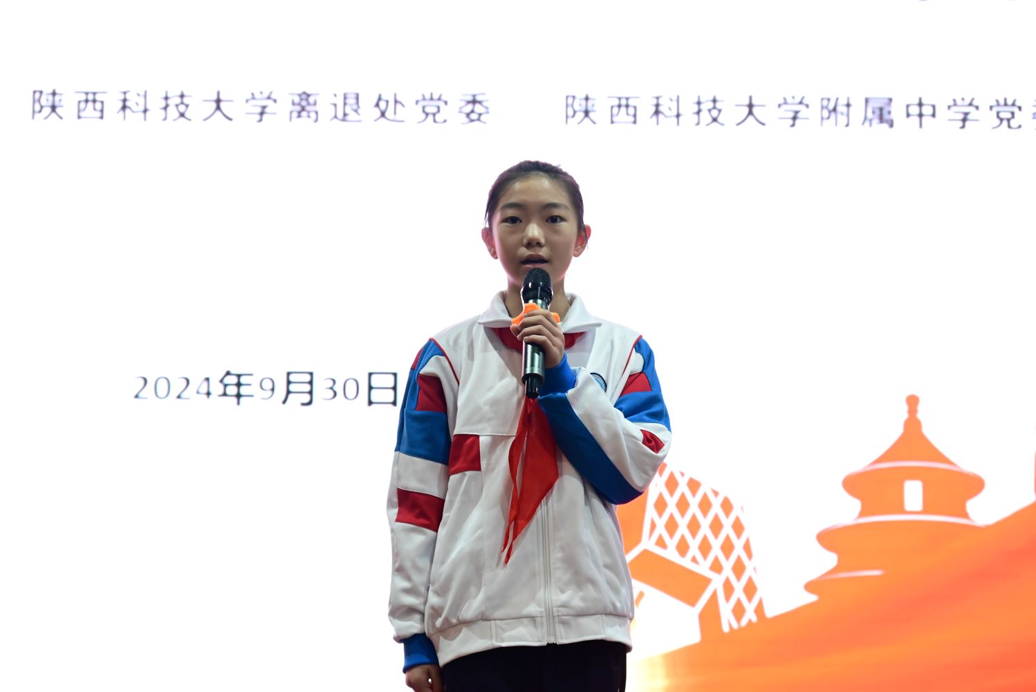 學(xué)生代表譚語(yǔ)桐同學(xué)領(lǐng)誦社會(huì)主義核心價(jià)值觀及陜西科技大學(xué)附屬中學(xué)校訓(xùn)、校風(fēng)及學(xué)風(fēng)。她情緒飽滿(mǎn)、語(yǔ)氣堅(jiān)定,表達(dá)了對(duì)學(xué)校、對(duì)祖國(guó)的熱愛(ài)和對(duì)未來(lái)的憧憬。