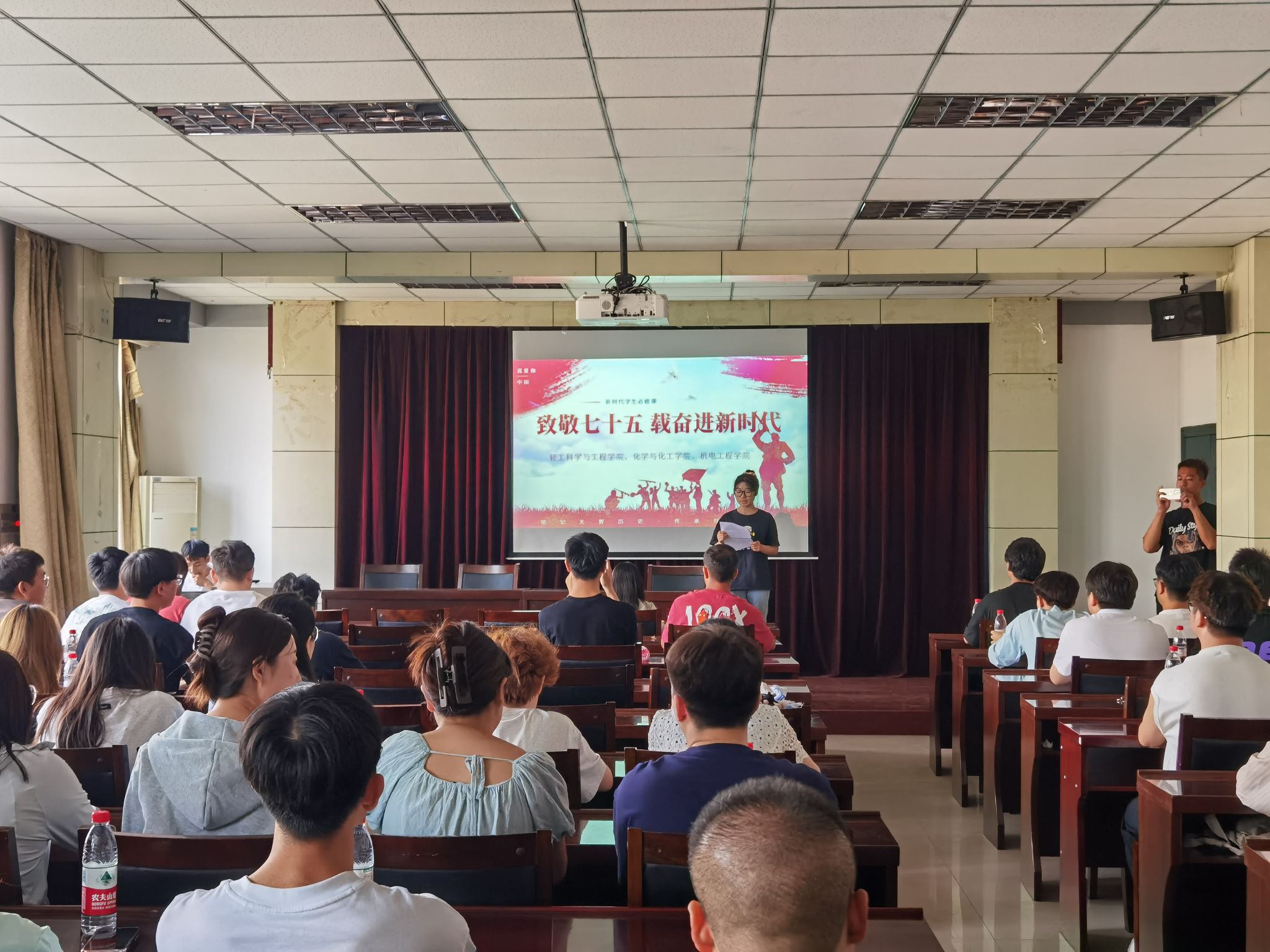 9月26日上午,機(jī)電工程學(xué)院(智能制造與機(jī)器人工程學(xué)院)、輕工科學(xué)與工程學(xué)院(柔性電子學(xué)院)、化學(xué)與化工學(xué)院各研究生會(huì)共同開展“致敬七十五載 奮進(jìn)新時(shí)代”主題活動(dòng),旨在進(jìn)一步增強(qiáng)同學(xué)們的愛(ài)國(guó)情感,激發(fā)新時(shí)代下的奮斗精神,促進(jìn)各學(xué)院之間的研究生會(huì)的交流與合作?;顒?dòng)由機(jī)電學(xué)院研究生會(huì)執(zhí)行主席朱禹清主持,共有100名研究生會(huì)干部參加。