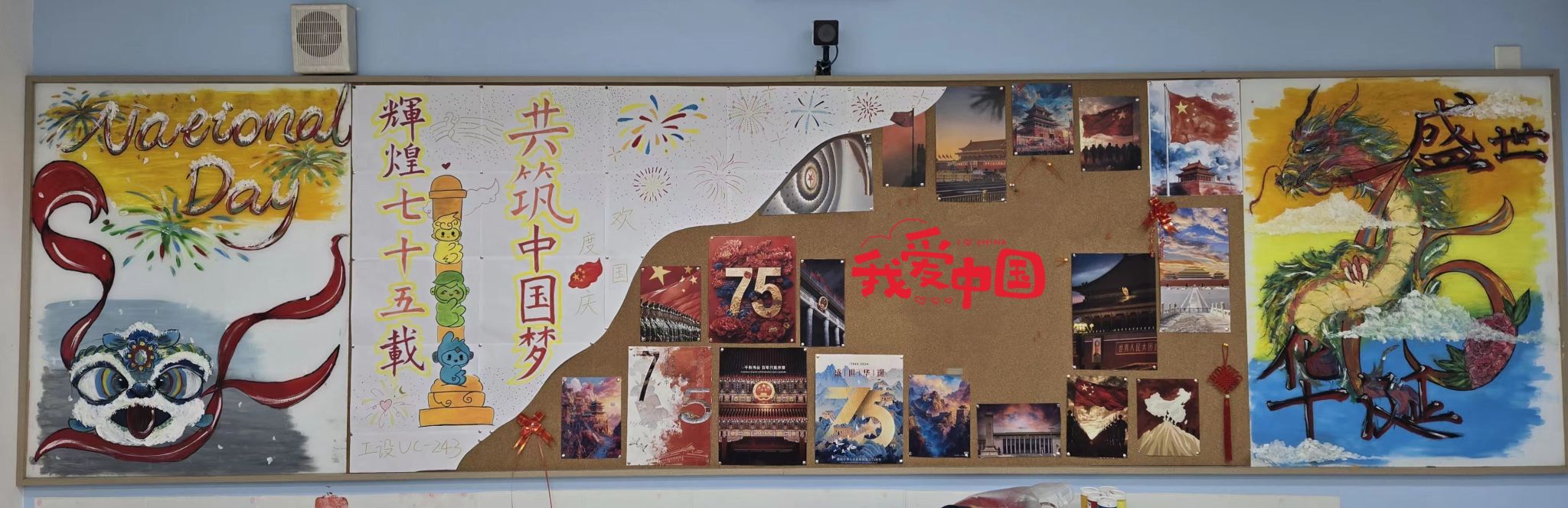 獻(xiàn)禮祖國(guó),繪就奮進(jìn)畫卷。學(xué)院注重發(fā)揮環(huán)境育人效果,利用班級(jí)自用教室開展以“輝煌七十五載,共筑中國(guó)夢(mèng)”為主題的教室板報(bào)設(shè)計(jì)大賽。板報(bào)的內(nèi)容豐富多彩,既有對(duì)革命歷史的回顧,也有對(duì)當(dāng)代中國(guó)發(fā)展成就的展示;既有對(duì)英雄人物的緬懷,也有對(duì)未來(lái)美好生活的憧憬,引導(dǎo)學(xué)生以筆寄情、以情融境,充分表達(dá)對(duì)祖國(guó)的熱愛(ài)與深深祝福。