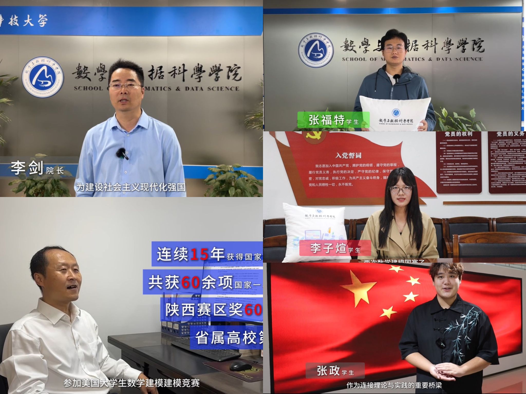 輝煌七十五載,數(shù)模筑夢未來。為慶祝新中國成立75周年,學院特別策劃拍攝“輝煌七十五載,數(shù)模筑夢未來”宣傳片,邀請院長、系主任介紹數(shù)學建模相關工作,四名學生代表分享參賽歷程與感悟,將學科競賽與勵志成才有機結合,激勵廣大學子以更加飽滿的熱情投入到數(shù)學學習實踐中,以優(yōu)異的成績?yōu)樽鎳A學科發(fā)展貢獻力量。