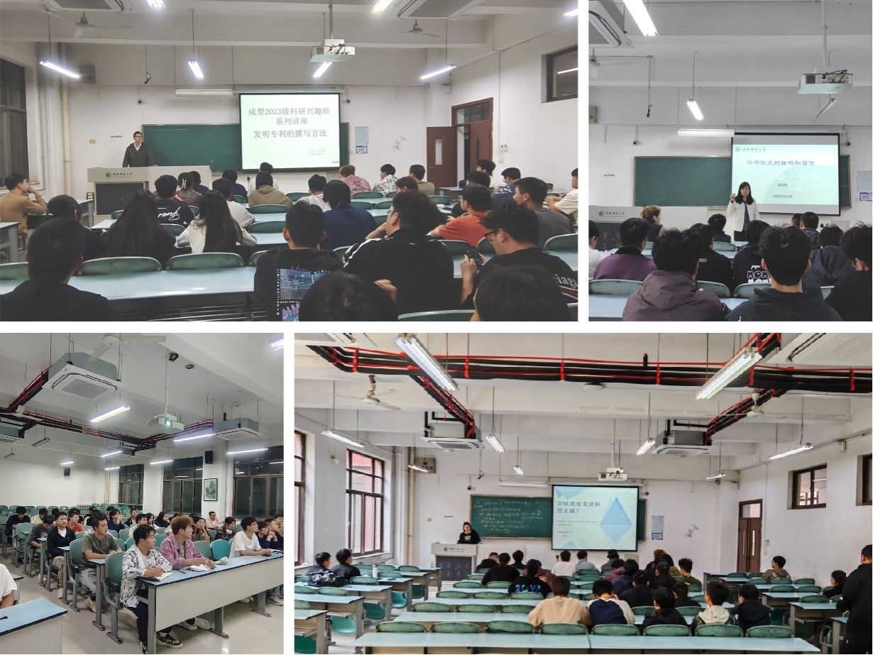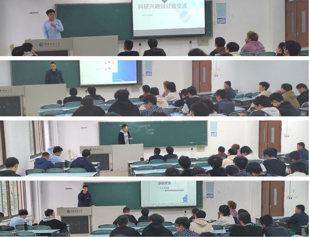 在前期充分論證講座主題及內(nèi)容基礎(chǔ)上,專業(yè)科研導(dǎo)師趙雪妮教授、王朋義副教授、楊光副教授、李譽(yù)之博士等四名教師分別就科研論文結(jié)構(gòu)與寫作方法、發(fā)明專利撰寫與申請流程、中英文獻(xiàn)查詢方法、中英文獻(xiàn)高效閱讀技巧等方面開展了系列講座,旨在提高科研興趣班同學(xué)的基本科研素養(yǎng),提升論文、專利等寫作方法和技巧。此外,還邀請了2022級本科生科研興趣班在競賽、專利等方面表現(xiàn)突出的陳涵鑠、梁建偉、王舒磊和陸星宇等四位同學(xué)進(jìn)行經(jīng)驗(yàn)分享與交流。