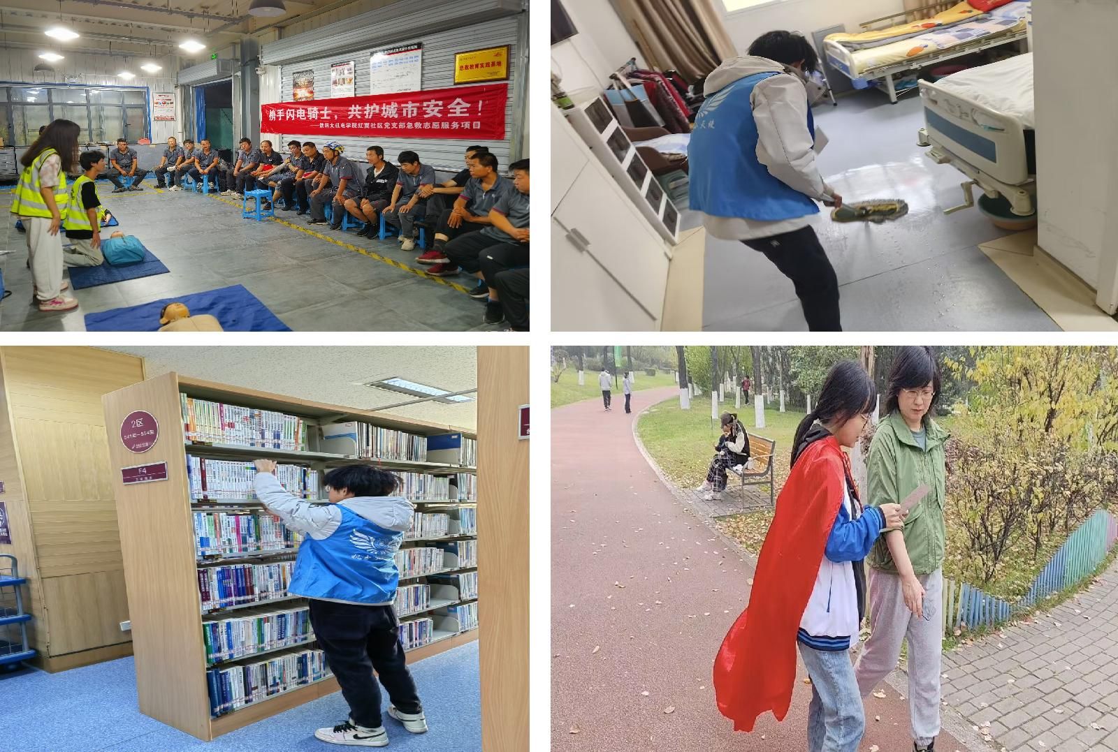 志愿服務(wù)顯擔(dān)當(dāng)。培訓(xùn)期內(nèi),學(xué)院入黨積極分子走進(jìn)圖書館、養(yǎng)老院、快遞服務(wù)中心等地開展了各類志愿服務(wù)活動,通過志愿活動增強(qiáng)入黨積極分子的奉獻(xiàn)與服務(wù)意識,以實際行動踐行黨的宗旨。