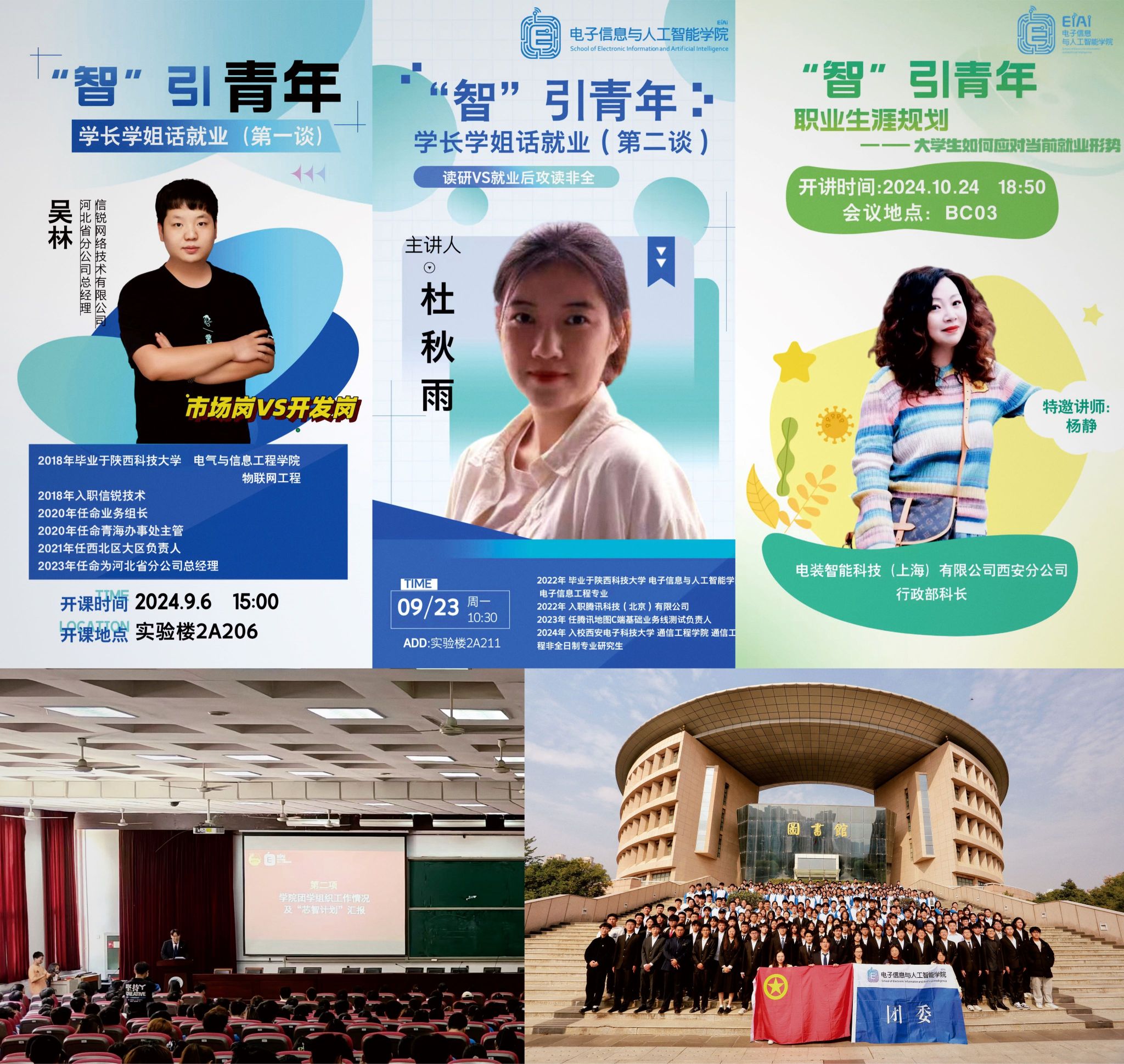 2024級新生入學以來,電子信息與人工智能學院緊緊圍繞立德樹人根本任務開展“智引青年計劃”系列入學教育課程。該計劃結合“05后”新生思想特點與現(xiàn)實需求以及計算機、電子信息類學生思維特征,加強頂層設計,內容涵蓋了思想引領、生涯指導、安全警示、實踐活動四大板塊。融合主題報告、團學活動、朋輩輔導、調查問卷,團體心理輔導等形式,為新生入學教育注入新活力,全方位護航新生成長成才。