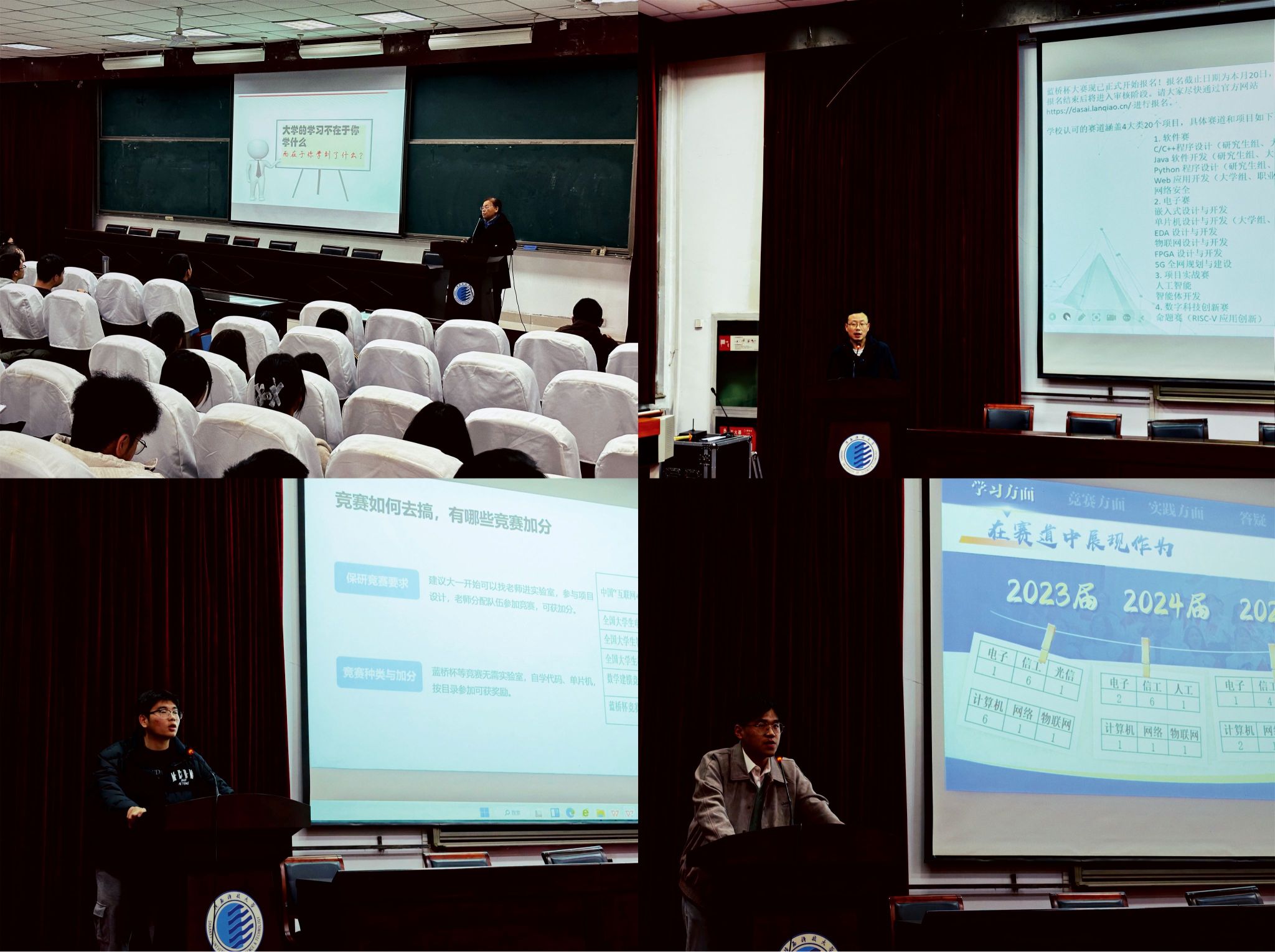 一方面,聘任學院班子成員、系主任、專業(yè)負責人、青年博士等21人組成新生班級學業(yè)導師團,將專任教師優(yōu)勢與學生思想政治教育工作有機結合,合理把控工作側重并形成有效互補,為新生深度解讀各專業(yè)的前沿動態(tài)、發(fā)展前景與就業(yè)方向,筑牢專業(yè)認知基礎,堅定專業(yè)選擇決心,助力后續(xù)專業(yè)學習。同時,舉辦“電路焊接技術培訓”“學科競賽答疑記者會”等實操性活動,培養(yǎng)新生科技創(chuàng)新與動手實踐能力。