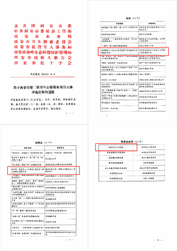 近日,由共青團西安市委、中共西安市委社會工作部等8個部門聯(lián)合舉辦的西安市第二屆青年志愿服務(wù)項目大賽結(jié)果揭曉,我校電氣與控制工程學(xué)院《珙桐花語——助力少數(shù)民族青少年健康成長志愿服務(wù)項目》獲得銀獎、《領(lǐng)未來,亮星空——自閉癥兒童五位一體公益幫扶領(lǐng)星計劃》獲得優(yōu)秀獎,學(xué)校團委榮獲“優(yōu)秀組織獎”。