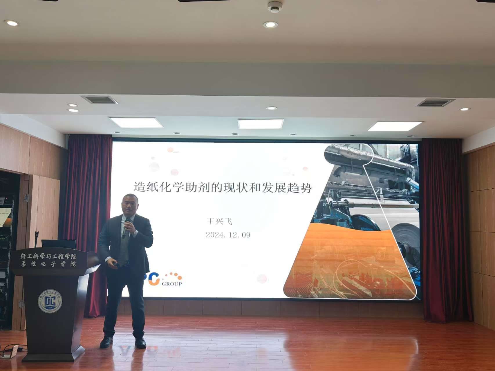 隨后與會(huì)嘉賓為本年度獲得“亞馬遜化工”獎(jiǎng)學(xué)金的27名學(xué)子頒獎(jiǎng)并合影留念。儀式后,王興飛為在場師生做了“造紙化學(xué)助劑的現(xiàn)狀和發(fā)展趨勢”的分享交流,在答疑互動(dòng)環(huán)節(jié)中,結(jié)合自身工作經(jīng)歷,為在場學(xué)生分享了個(gè)人發(fā)展和職業(yè)規(guī)劃技能,解答了學(xué)生在學(xué)業(yè)和求職中遇到的各種問題。