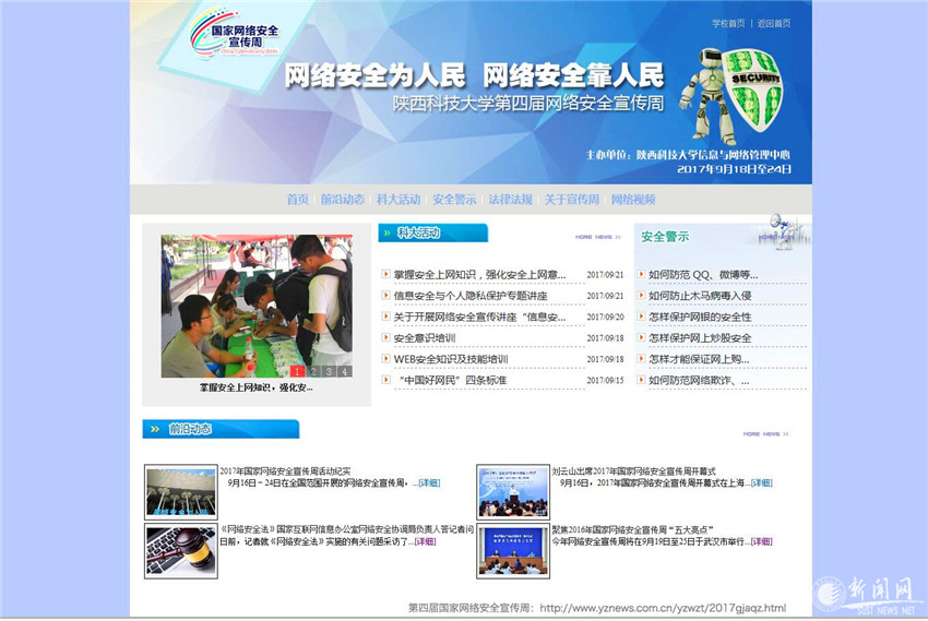 按照陜西省教育廳下發(fā)的《關(guān)于開展陜西省第四屆網(wǎng)絡(luò)安全宣傳周活動(dòng)的通知》文件精神,我校信息與網(wǎng)絡(luò)管理中心聯(lián)合學(xué)工部、校團(tuán)委于9月18至24日開展了一系列生動(dòng)活潑、豐富多彩、寓教于樂的“網(wǎng)絡(luò)安全教育”活動(dòng)。
