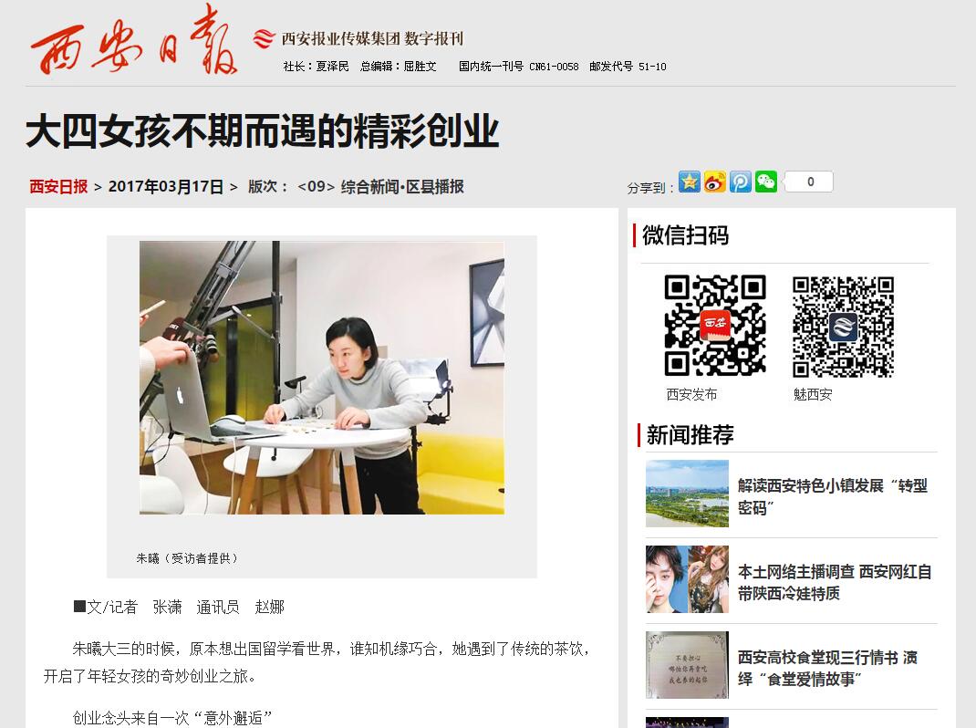 朱曦的創(chuàng)業(yè)故事引發(fā)了外媒的高度關(guān)注。省教育廳微博推送了“從0開始,向1邁進(jìn)”的微博,簡要介紹朱曦的創(chuàng)業(yè)經(jīng)歷。西安日報迅速派出記者采寫并刊發(fā)了題為《大四女孩不期而遇的精彩創(chuàng)業(yè)》的報道,鳳凰網(wǎng)、網(wǎng)易、搜狐等多家主流媒體紛紛進(jìn)行了轉(zhuǎn)載報道。