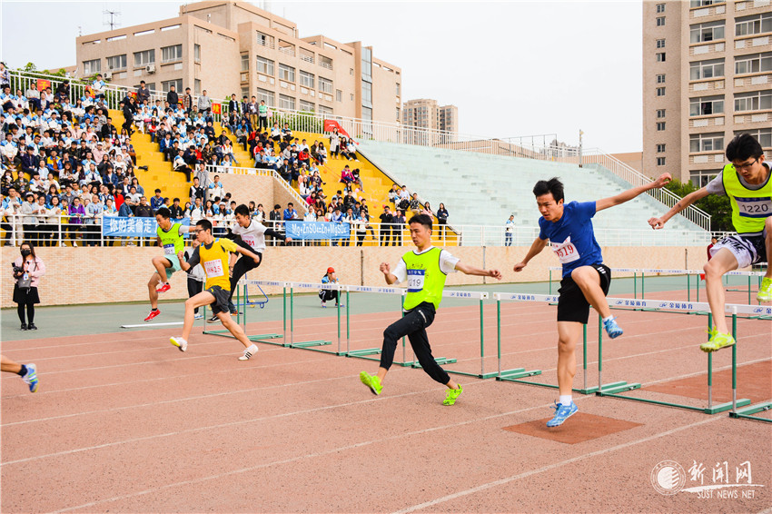 4月20日上午8:30,大學(xué)生組男子110米跨欄決賽準(zhǔn)時(shí)開始。八名運(yùn)動(dòng)員整裝待發(fā),隨著一聲槍響,都朝終點(diǎn)飛奔。他們邁開長(zhǎng)腿,跨越及腰的跨欄??磁_(tái)上呼聲不斷,仿佛各學(xué)院在為運(yùn)動(dòng)員加油的同時(shí),更要在氣勢(shì)上一分高下。最終,始終遙遙領(lǐng)先的經(jīng)管選手張釗瑋獲得冠軍,化工學(xué)院武星辰與鎬京學(xué)院邊毅名列亞季軍。