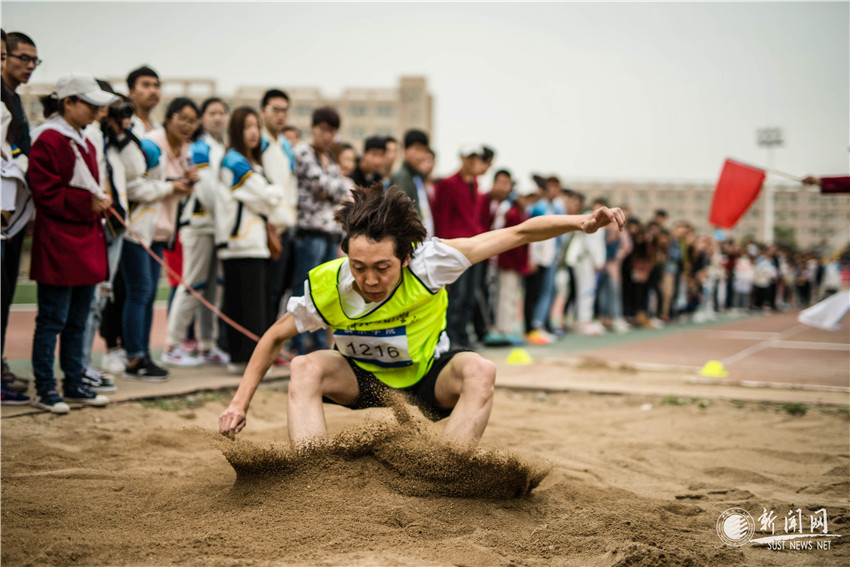 場(chǎng)地另一端,大學(xué)生組男子三級(jí)跳遠(yuǎn)決賽也吸引了眾多關(guān)注。選手們先單腿跳出一步,而后跨出一大步,最后輕盈地躍入沙坑,一跑一跳間矯捷靈動(dòng)。鎬京學(xué)院3名選手分別獲得了第一名、第二名、第三名的好名次,其中前兩名的成績(jī)都突破了12米。