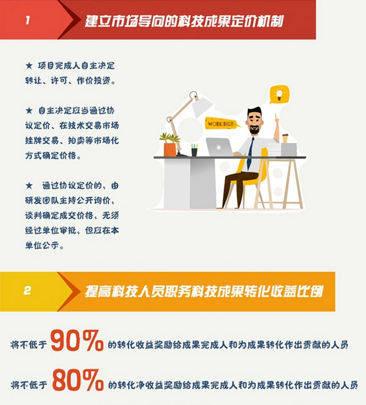 一、建立市場導向的科技成果定價機制。利用財政性資金資助形成的科技成果,除涉及國防、國家安全、國家利益和重大社會公共利益的,可以由高等院校、研發(fā)機構(gòu)的項目完成人自主決定轉(zhuǎn)讓、許可、作價投資。自主決定轉(zhuǎn)讓、許可、作價投資應(yīng)當通過協(xié)議定價、在技術(shù)交易市場掛牌交易、拍賣等市場化方式確定價格。通過協(xié)議定價的,由研發(fā)團隊主持公開詢價,談判確定成交價格,無須經(jīng)過單位審批,但應(yīng)在本單位公示。
