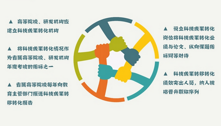 九、創(chuàng)新科技成果轉(zhuǎn)移轉(zhuǎn)化評價機制。高等院校、研發(fā)機構(gòu)應(yīng)建立科技成果轉(zhuǎn)化機構(gòu),設(shè)立科技成果轉(zhuǎn)化崗位。將科技成果轉(zhuǎn)化業(yè)績與論文、縱向課題指標同等對待,科技成果轉(zhuǎn)移轉(zhuǎn)化績效突出人員,納入破格晉升職稱序列。將科技成果轉(zhuǎn)化情況作為省屬高等院校、研發(fā)機構(gòu)年度考核的指標之一。省屬高等院校每年向教育主管部門報送科技成果轉(zhuǎn)移轉(zhuǎn)化報告,由教育主管部門統(tǒng)一報省政府,作為增加高等院校撥款的重要依據(jù)。