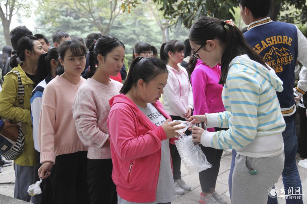 分鏡頭1:在測試場地門口,大三年級某班長正在給同學(xué)們分發(fā)測試肺活量的吹嘴。提到體能測試活動,他說,“大三年級的同學(xué)普遍比較重視這次體能測試,提前幾天就在操場進(jìn)行練習(xí),當(dāng)天早上一大清早就換好運(yùn)動裝,排隊(duì)來到測試地點(diǎn),以便能夠取得好成績?!?br />