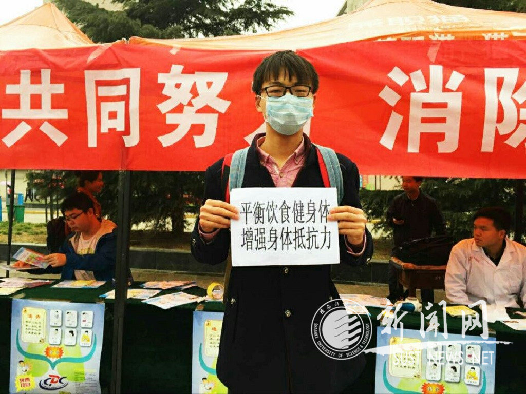 活動(dòng)前,匯海醫(yī)療隊(duì)志愿者現(xiàn)場(chǎng)為經(jīng)過(guò)的師生發(fā)放宣傳材料及口罩,聯(lián)系沁園餐廳滾動(dòng)播放動(dòng)漫宣傳片,以展板上簽名、手持標(biāo)語(yǔ)互動(dòng)拍照等多種形式向同學(xué)們介紹如何防治結(jié)核病,宣傳結(jié)核病診斷、治療的知識(shí)和相關(guān)政策。