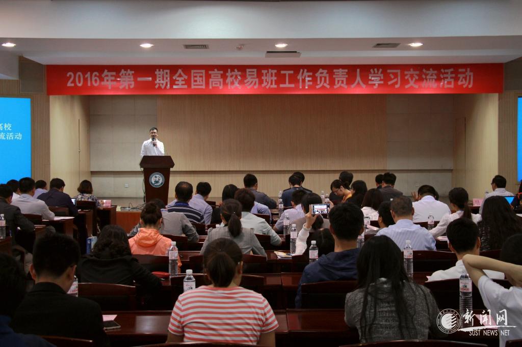 2016年第一期全國(guó)高校易班工作負(fù)責(zé)人學(xué)習(xí)交流會(huì)于5月20日在中國(guó)石油大學(xué)(華東)舉行。教育部易班發(fā)展中心主任朱明倫和來(lái)自全國(guó)25所(20所部屬和5所省屬)易班共建高校的負(fù)責(zé)人參加會(huì)議。四所高校(中國(guó)石油大學(xué)、東華大學(xué)、陜西科技大學(xué)、福州大學(xué))易班負(fù)責(zé)人先后發(fā)言,介紹本校易班建設(shè)情況并交流建設(shè)經(jīng)驗(yàn)。我校學(xué)工部副部長(zhǎng)楊建(主持工作)代表學(xué)校作交流發(fā)言。