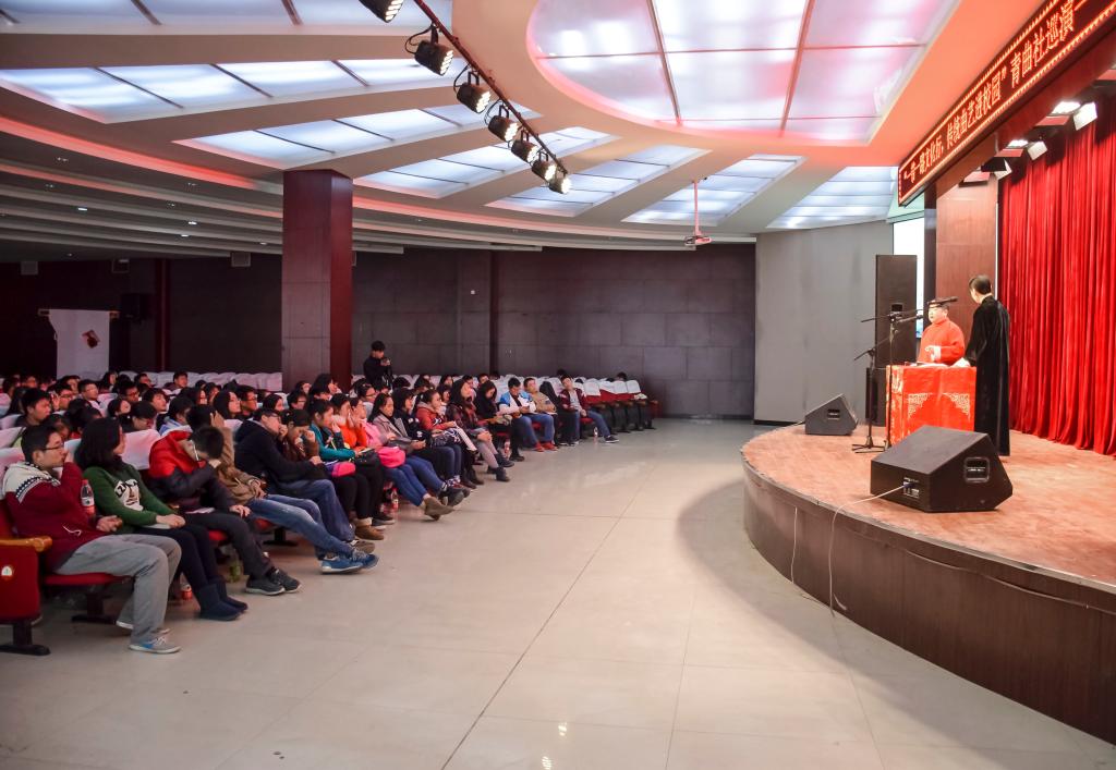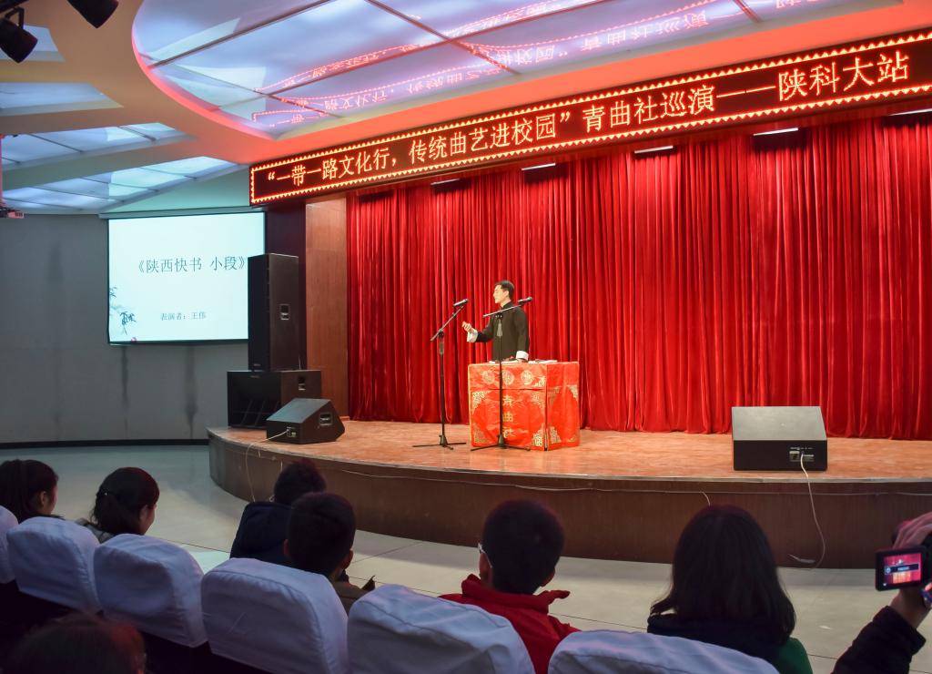 “一帶一路文化行,傳統(tǒng)曲藝進(jìn)校園”,青曲社巡演——陜科大站于12月11日下午十四時(shí)在大學(xué)生活動(dòng)中心開(kāi)演。兩個(gè)小時(shí)、五個(gè)節(jié)目,臺(tái)上相聲藝術(shù)家們表演酣暢淋漓,臺(tái)下觀眾觀看投入、樂(lè)在其中。