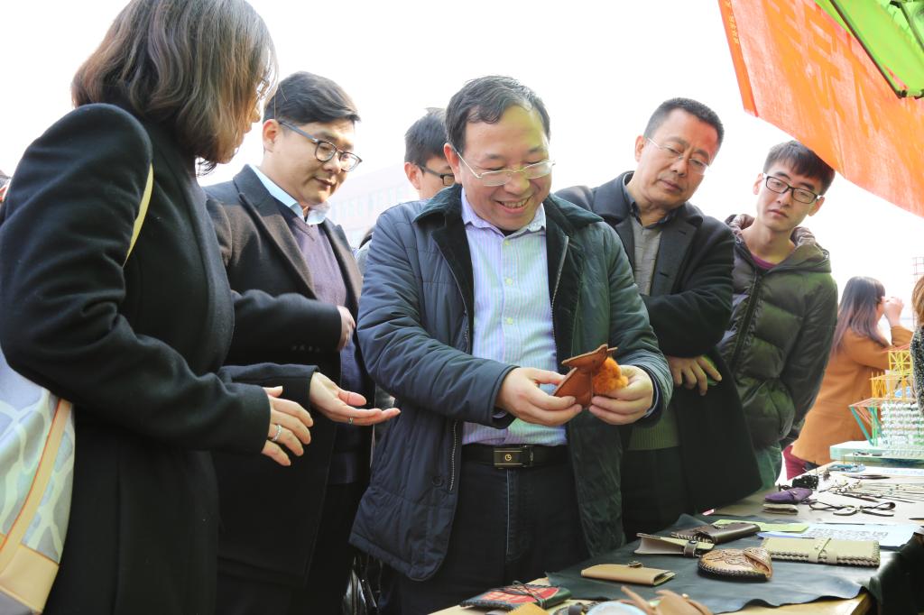 開幕式上,姚書志、溫鋒逐一參觀每個展位,認真聽取了各個作品的講解,觀看了作品功能展示,饒有興致地對作品的原理功能、實際應用提出了問題和看法,并對大學生科技創(chuàng)新節(jié)的舉辦和學生的創(chuàng)新能力表示贊許。溫鋒還在利用變色反應原理的紙上,題書“創(chuàng)新”兩字,寄語莘莘科大學子。大批同學聚集在沁園廣場的各展臺前,爭先體驗操作“鉆木取火”、“手工皮具創(chuàng)意工坊”、“航模天高任我飛”等生動有趣又富含科學元素的創(chuàng)新作品。