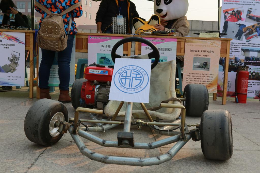 此次科技創(chuàng)新節(jié)以“智慧點亮人生?科技引領(lǐng)未來”為主題,通過3天時間,集中展示了我校近幾年來參加“挑戰(zhàn)杯”競賽、大學生創(chuàng)新創(chuàng)業(yè)訓練計劃項目和學院各級各類的科技創(chuàng)新和學術(shù)研究成果。此次所展示的作品在創(chuàng)新方法、技術(shù)及模式等方面有較大提高,特別是部分優(yōu)秀作品在技術(shù)創(chuàng)新、產(chǎn)品創(chuàng)新、原理創(chuàng)新、應用創(chuàng)新和集成創(chuàng)新等要素上表現(xiàn)突出,具有較強的社會和經(jīng)濟效益。此外,從今年12月至2016年5月,為期半年的時間內(nèi)將陸續(xù)組織大學生科普知識競賽、“挑戰(zhàn)杯”大學生創(chuàng)業(yè)計劃競賽、大學生科技創(chuàng)新分享會、班級團支部“五小創(chuàng)”活動等系列活動,各學院、科技創(chuàng)新類社團還將舉辦子活動35項,多角度、全方位、多層次為廣大青年學生搭建發(fā)揮創(chuàng)意、展示創(chuàng)新、實現(xiàn)創(chuàng)意的舞臺。