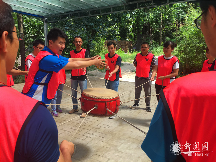 此次拓展訓(xùn)練地點(diǎn)位于秦嶺北麓太平河畔,青年教師們乘車(chē)到達(dá)山腳的出發(fā)點(diǎn),首先進(jìn)行分團(tuán)隊(duì)、選隊(duì)長(zhǎng)、定隊(duì)名等一系列破冰之旅的活動(dòng),大家的情緒不斷高漲,團(tuán)隊(duì)合作和競(jìng)爭(zhēng)意識(shí)開(kāi)始悄然加強(qiáng)。短暫的調(diào)整之后,六公里徒步登山項(xiàng)目開(kāi)始了,在近四十度的高溫下,對(duì)每一位參加拓展訓(xùn)練的教師都是艱巨的挑戰(zhàn),然而大家在相互鼓勵(lì)和幫助中,無(wú)一人掉隊(duì)或放棄,每一次都全員順利登頂。在山頂?shù)耐卣够?,教練以“溝通、信任、合作”為主題,以團(tuán)隊(duì)精神為導(dǎo)引,以心理挑戰(zhàn)為重點(diǎn),帶領(lǐng)大家進(jìn)行了集體大鍋飯、齊眉棍、極速60秒、團(tuán)隊(duì)堡壘、鼓舞飛揚(yáng)、穿越電網(wǎng)等一系列精心設(shè)計(jì)的項(xiàng)目,全體青年教師團(tuán)結(jié)一致、齊心協(xié)力,全身心地投入到每項(xiàng)活動(dòng)中,圓滿完成了各項(xiàng)拓展任務(wù)。