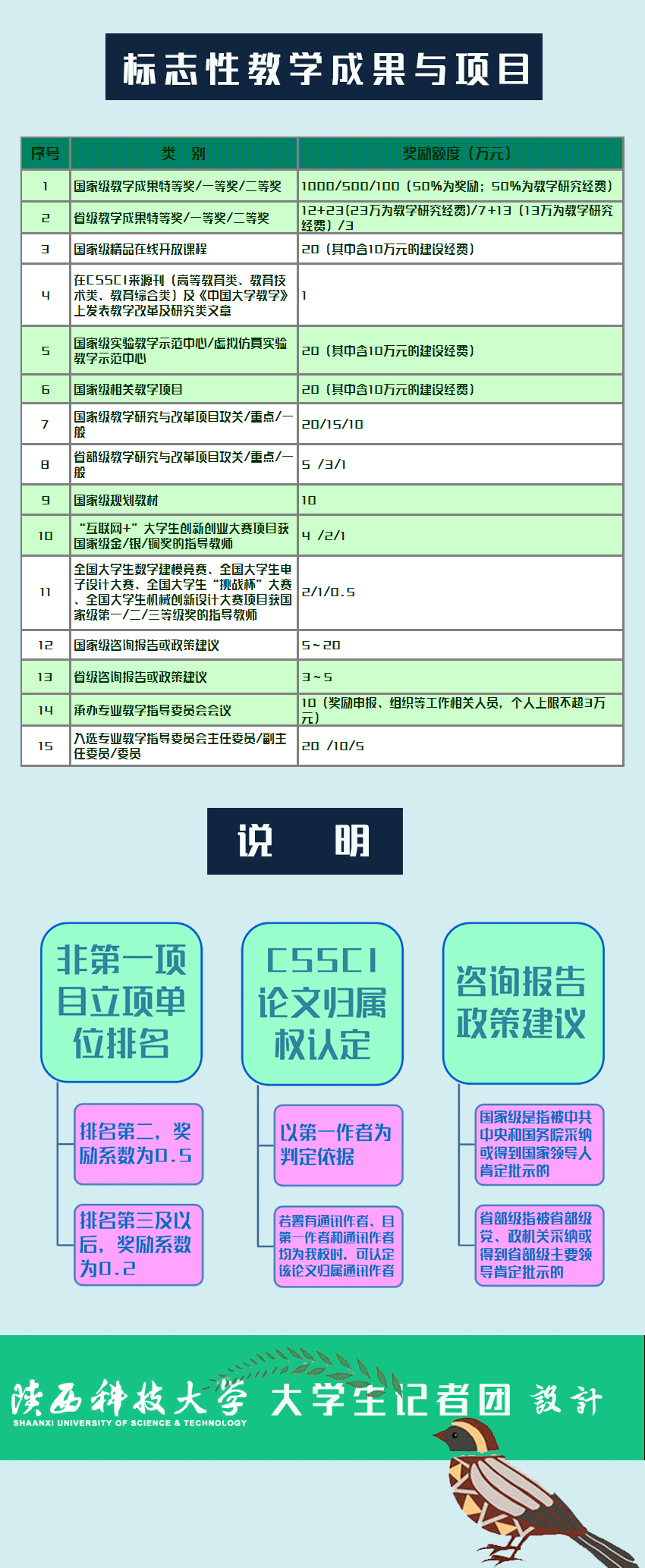【圖說(shuō)】《陜西科技大學(xué)標(biāo)志性教學(xué)成果與項(xiàng)目獎(jiǎng)勵(lì)辦法(試行)》