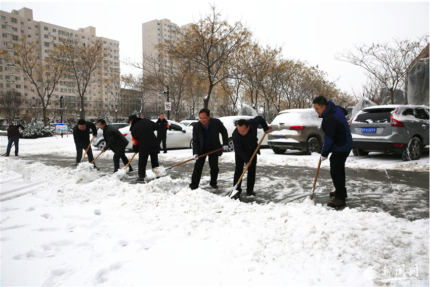 1月3日,西安迎來2018新年以來的第一場(chǎng)大雪,短短一夜間,一場(chǎng)大雪裝扮下的校園顯出別樣美麗,清早出行的師生們發(fā)現(xiàn):大雪凍住的是銀裝素裹的美景,凍不住的卻是我們的道路——我校及時(shí)啟動(dòng)惡劣天氣應(yīng)急預(yù)案,全校各單位集體出動(dòng)掃雪,確保道路暢通和廣大師生出行平安。1月4日上午9時(shí)許,校黨委書記姚書志、校長(zhǎng)馬建中、校黨委副書記王道安、紀(jì)委書記王樹茂、副校長(zhǎng)李志健等校領(lǐng)導(dǎo)紛紛來到逸夫樓前,帶領(lǐng)各職能部門和后勤集團(tuán)同志一起,拿起鐵鍬、掃把等工具對(duì)樓前行人、車輛通道的積雪進(jìn)行清掃。校園內(nèi)的各處主干道上處處可見師生們忙碌鏟雪掃雪的身影,用勞動(dòng)和愛心為廣大師生的出行提供便利。