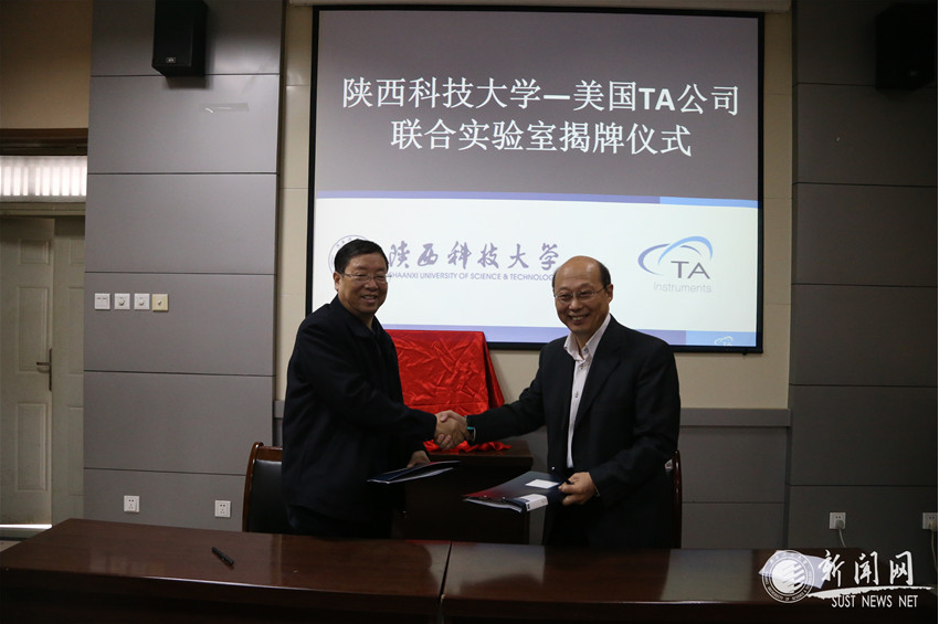 “陜西科技大學(xué)—美國TA儀器聯(lián)合實(shí)驗室”揭牌儀式于10月20日上午在我校舉行。我校此次與TA儀器強(qiáng)強(qiáng)聯(lián)手成立聯(lián)合實(shí)驗室,共同開展面向熱分析、流變技術(shù)及其與國內(nèi)材料領(lǐng)域相關(guān)應(yīng)用結(jié)合的工作。