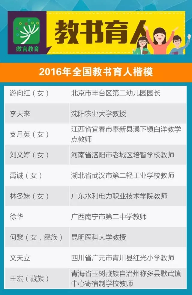 2016年全國教書育人楷模簡要事跡