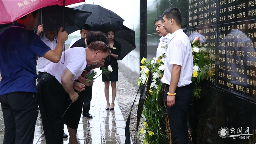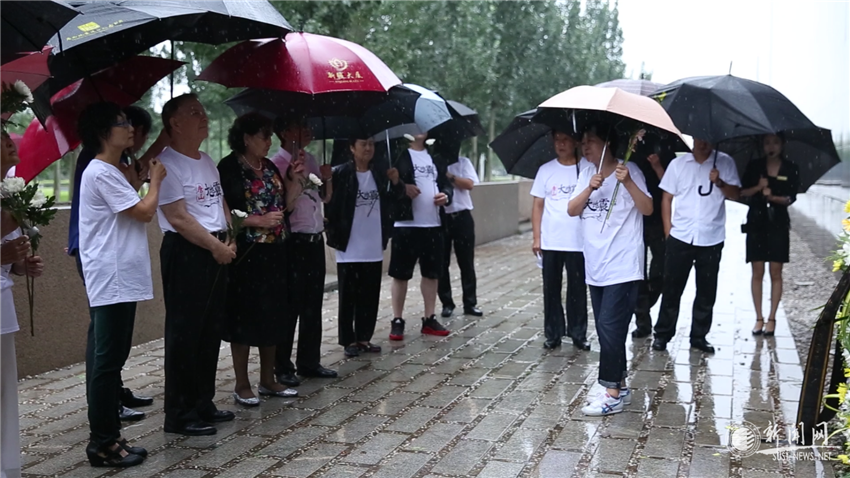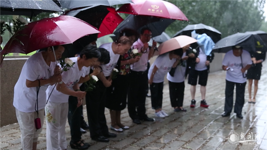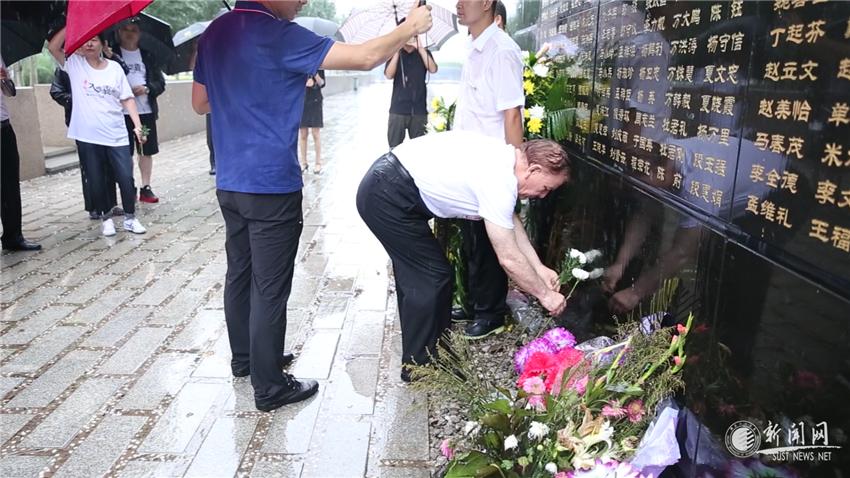 陶74幸存同學(xué)向遇難者紀(jì)念墻鞠躬