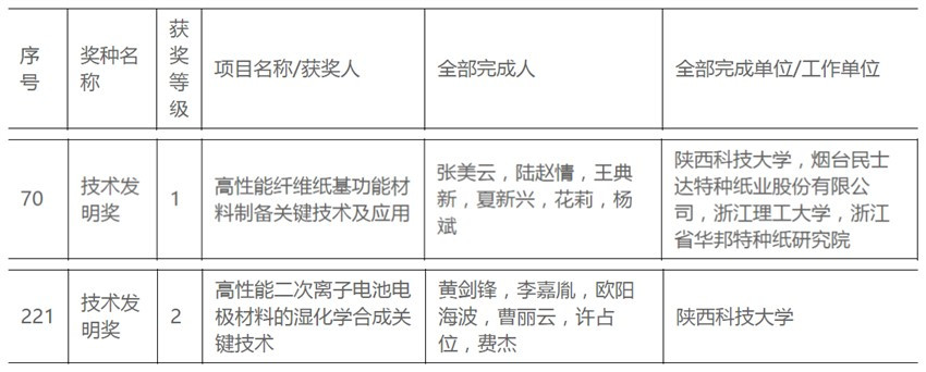 陜西省科技創(chuàng)新大會于9月22日在西安召開,我校5項科技成果獲2015年度省科學(xué)技術(shù)獎。我校獨立主持完成的4項科技成果獲陜西省科學(xué)技術(shù)二等獎,與他人合作完成1項成果獲陜西省科學(xué)技術(shù)獎三等獎。此次獲獎成果如下:“基于高性能微晶纖維素制備的麥草高值利用技術(shù)與應(yīng)用”科研成果獲得陜西省科學(xué)技術(shù)獎二等獎;“中高速衛(wèi)生紙機全集成自動化控制系統(tǒng)”科研成果獲得陜西省科學(xué)技術(shù)獎二等獎;“高效厭氧好氧二級生化加芬頓氧化技術(shù)用于有機廢水處理的技術(shù)推廣”科研成果獲得陜西省科學(xué)技術(shù)獎二等獎;“鋰離子電池材料濕化學(xué)合成研究及應(yīng)用”科研成果獲得陜西省科學(xué)技術(shù)獎二等獎;“高性能LED線光源技術(shù)研究”科研成果獲得陜西省科學(xué)技術(shù)獎三等獎。