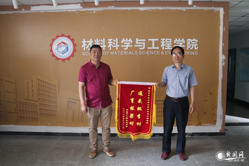 為了表達(dá)對材料學(xué)院的感恩與留戀,校友們將一面“遍載桃李樹、廣育棟梁材”的錦旗贈予學(xué)院,祝愿學(xué)院在學(xué)科發(fā)展、人才培養(yǎng)等方面再創(chuàng)新的輝煌。