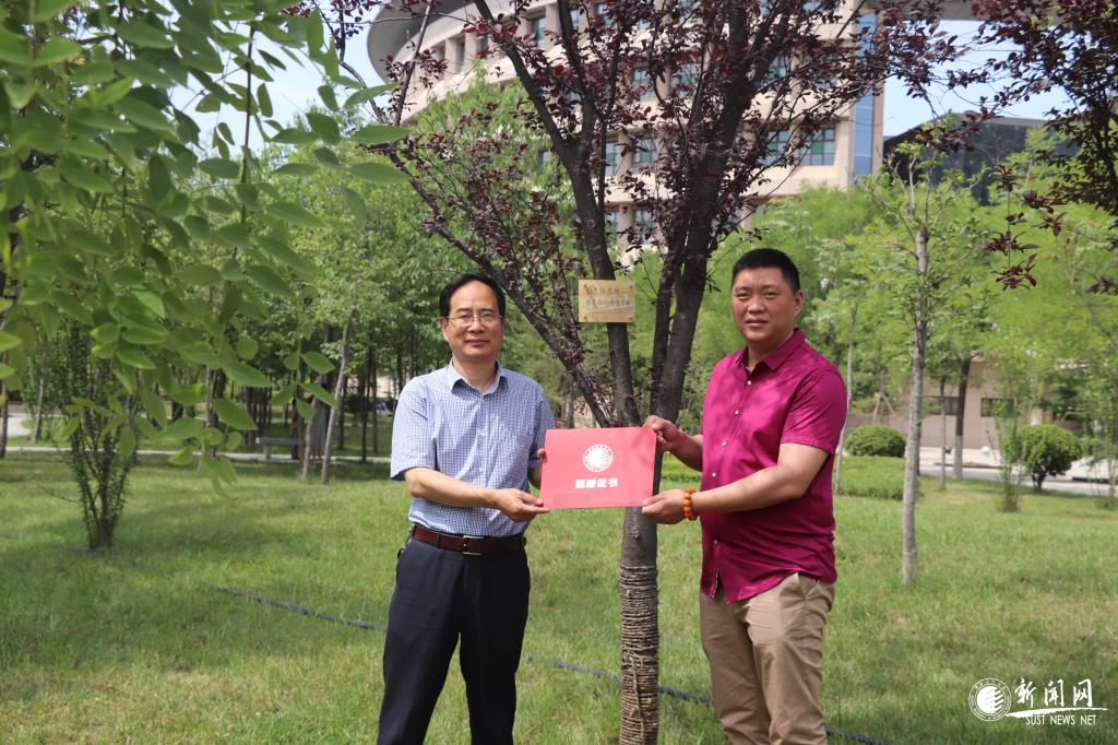 陳福生向校友簡要介紹了校友林建設(shè)情況,并代表學(xué)校對校友的捐贈表示衷心感謝。同時,向校友頒發(fā)了捐贈證書。莘莘學(xué)子心,深深母校情。樹木認(rèn)捐表達(dá)了校友們對母校的摯愛、關(guān)心與支持,希望各位校友能夠和母校共同發(fā)展,發(fā)揚陜科大“三創(chuàng)兩遷”精神,不忘初心,在自己的工作崗位上腳踏實地、積極進(jìn)取、勇攀高峰。