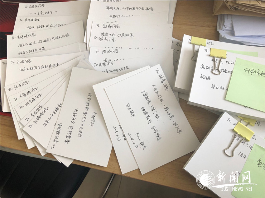 6月29日,在畢業(yè)生即將離校奔赴工作崗位之際,輕工學(xué)院畢業(yè)班輔導(dǎo)員分別用自己的方式為畢業(yè)生送去最真摯的祝福。印刷、包裝、非織造專業(yè)的輔導(dǎo)員張蕓通過明信片的形式,親手為自己所帶的187名畢業(yè)生寫下美好祝福,造紙、皮革專業(yè)的輔導(dǎo)員麻力為自己所帶的365名學(xué)生寫下真摯的臨別贈言,全文共計1385字,字字飽含真情,催人淚下。