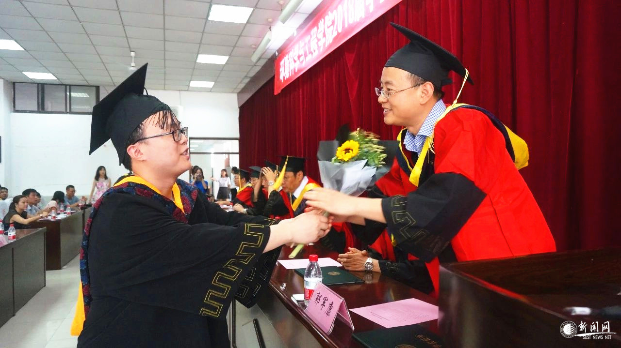 典禮寄語新征程。28日上午,學院在教三101隆重舉行2018屆畢業(yè)典禮暨學位授予儀式。院長馬宏瑞代表全體教師親切致辭,勉勵學生重塑理想,敢于拼搏,牢記科大“至誠至博”校訓,在各自的崗位上演繹精彩人生,一句“我愛你們!”道出了對畢業(yè)學子深切的感情。畢業(yè)生代表董金葉飽含深情表達了對母校的生日祝福和留戀感激,“聚是一團火,散是滿天星,科大、環(huán)境將是我們一生的烙印”引起在場學生共鳴。學位授予儀式結(jié)束后,畢業(yè)生代表們向全體老師獻上鮮花表達感恩和祝福,全體齊聲高呼“老師辛苦了,科大再見,我們畢業(yè)了!”,將全場氣氛推向高潮。畢業(yè)典禮在全體師生合唱《再見》的溫暖歌聲中圓滿落幕。