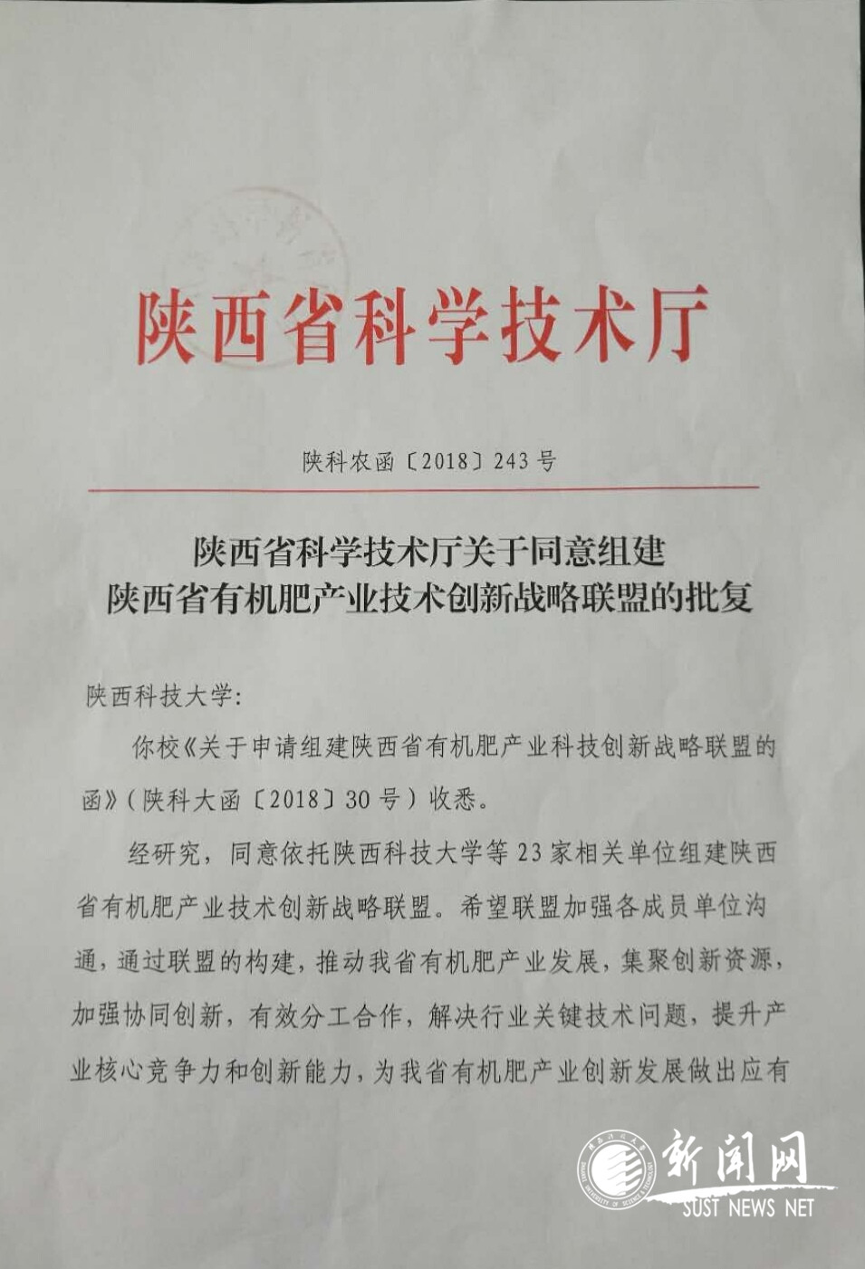 陜西省科技廳批準將陜西省有機肥產業(yè)科技創(chuàng)新戰(zhàn)略聯(lián)盟設在我校,決定以陜西科技大學為理事長單位,聘請化工學院李祥教授擔首屆創(chuàng)始任理事長,是對我??萍脊ぷ鞯目隙āB?lián)盟在以后的工作中,發(fā)揮理事長單位的作用,加強聯(lián)盟各成員的溝通,發(fā)揮各自優(yōu)勢,解決有機肥產業(yè)的關鍵技術研發(fā)和技術成果產業(yè)化問題,與國內外單位加強聯(lián)系,提升有機肥產業(yè)核心競爭力和創(chuàng)新能力,為我省有機肥產業(yè)的發(fā)展做出貢獻。