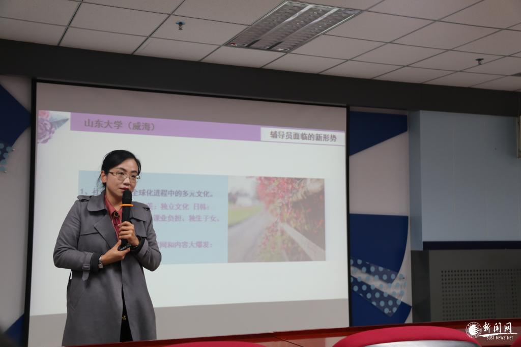 10月15日下午,第九屆全國高校輔導(dǎo)員年度人物、山東大學(xué)威海分校海洋學(xué)院黨委副書記范蕊副教授應(yīng)邀來我校作了題為《新形勢下輔導(dǎo)員如何開展思想政治教育》的報(bào)告,全體學(xué)工系統(tǒng)人員參加了此次報(bào)告會,報(bào)告會由學(xué)工部副部長李萌主持。